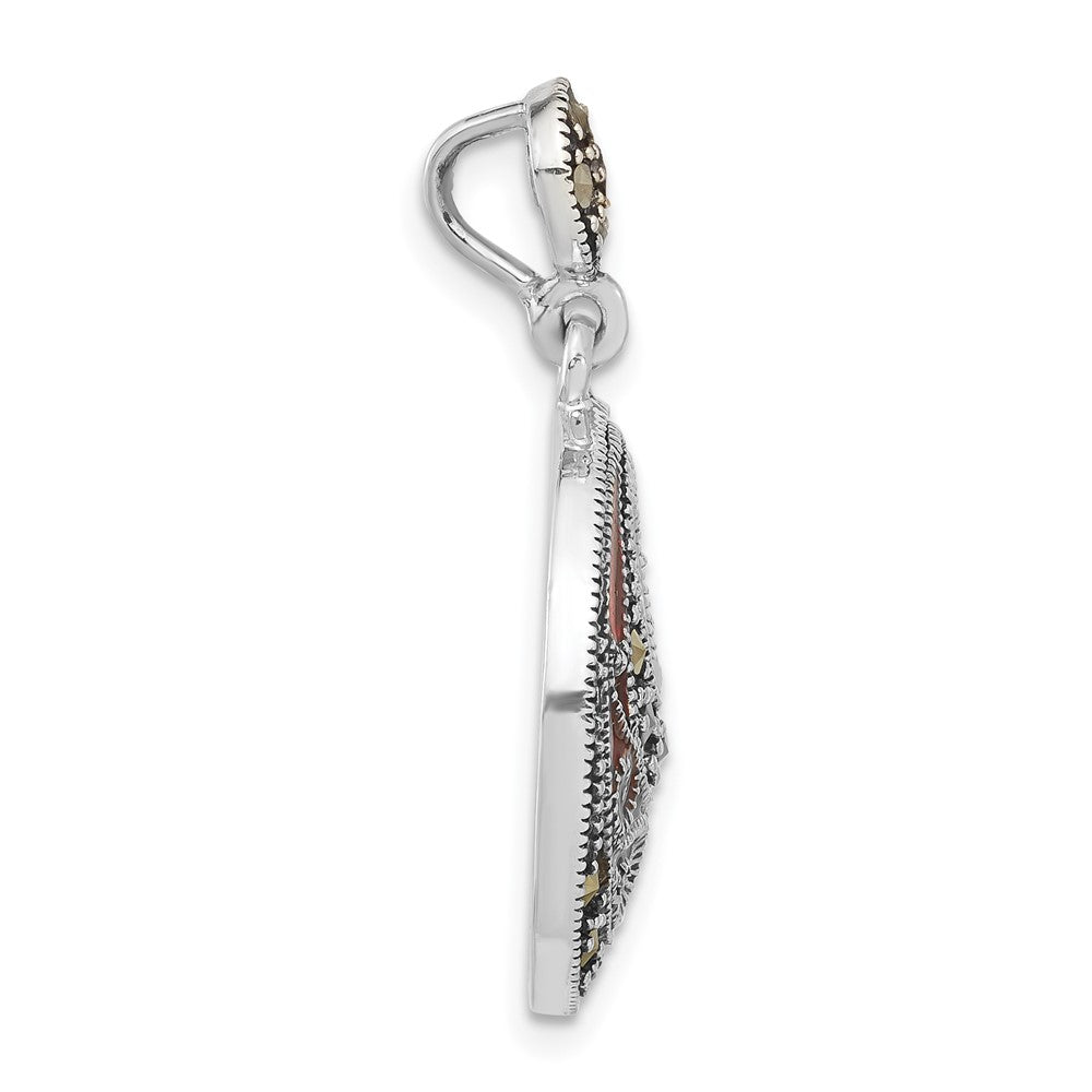 The Sterling Silver Antiqued Marcasite & Red Epoxy Circle Slide Pendant is a standout piece for any jewelry lover. This pendant features sleek sterling silver, polished for shine and antiqued for a classic touch. A gleaming red epoxy circle adds a pop of color, perfectly complemented by dazzling marcasite stones. Measuring 30 mm in length and 19.1 mm in width, this pendant is an ideal size for daily wear or special events. A beaded texture provides extra charm, making this fancy pendant a unique addition to any outfit. Elevate your style with the Sterling Silver Antiqued Marcasite & Red Epoxy Circle Slide Pendant.