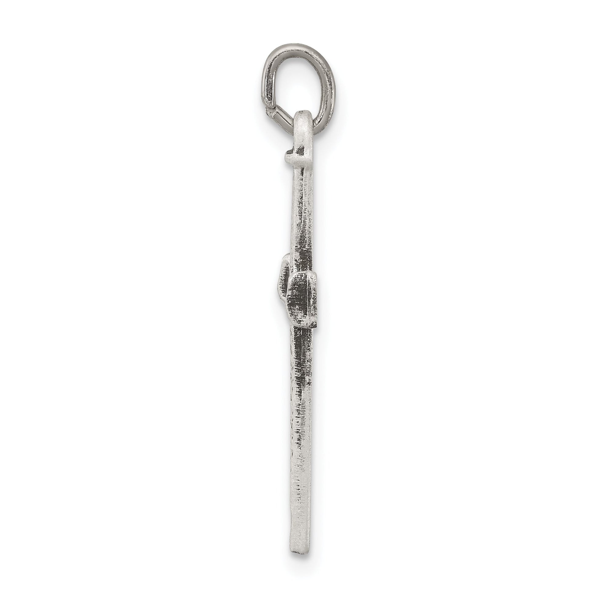 The Sterling Silver Antiqued Nail Cross Pendant is a masterpiece crafted from premium 925 sterling silver. This exquisite piece boasts a polished finish that catches the light beautifully. The pendant, measuring 25 mm in length and 13 mm in width, features a solid structure made using advanced die-struck methods, ensuring longevity and durability. The antiqued design offers a vintage charm, making it a perfect accessory for those who appreciate timeless style. The Sterling Silver Antiqued Nail Cross Pendant adds a touch of elegance and faith to any jewelry collection.