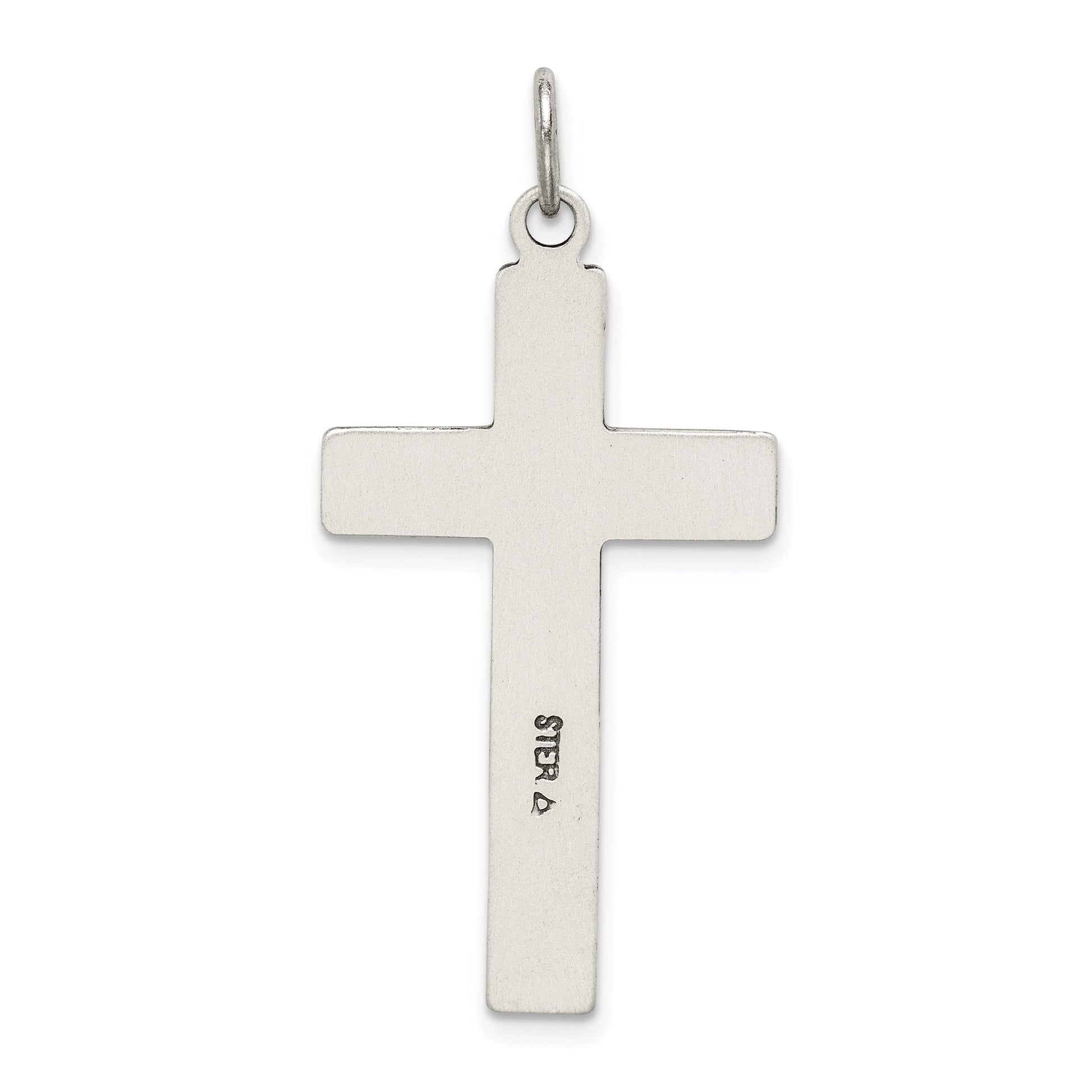 The Sterling Silver Antiqued & Satin Cross Pendant showcases a perfect blend of timeless elegance and modern style. Handcrafted from 925 sterling silver, this stunning piece features a captivating antiqued and satin finish. Measuring 33.25 mm in length and 19.8 mm in width, this solid die-struck pendant adds a touch of grace and sophistication to any ensemble. Its flat back profile ensures a comfortable fit against the skin. Whether worn alone or layered with others, the Sterling Silver Antiqued & Satin Cross Pendant is an essential addition to your jewelry collection, offering both versatility and refined charm.