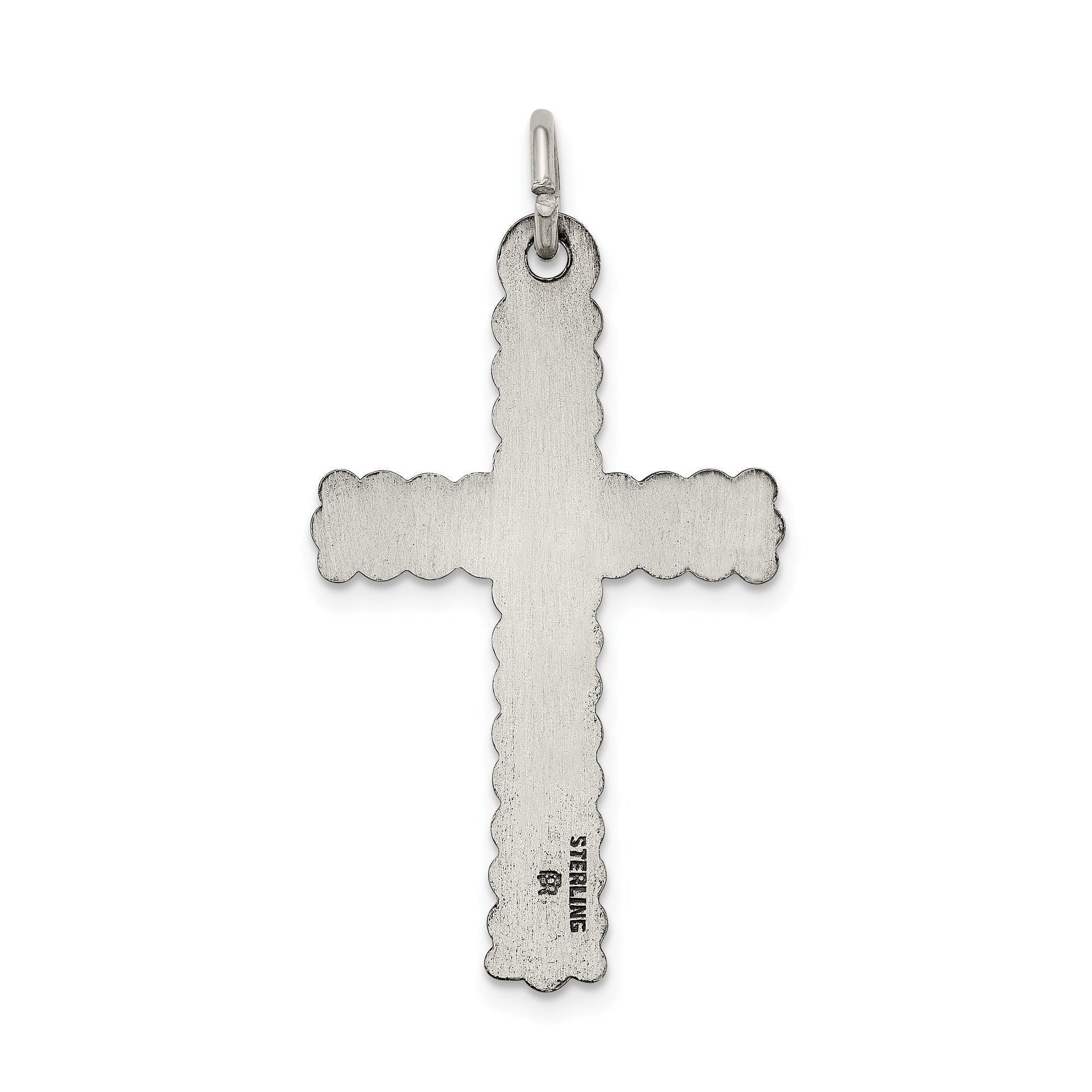 The Sterling Silver Antiqued, Textured, and Brushed Latin Cross Pendant exudes timeless elegance, crafted with precision from 925 sterling silver. This charming piece measures 30.95 mm in length and 20.4 mm in width, making it the perfect size for everyday wear. Its solid structure ensures durability, while the Die Struck crafting process enhances its intricate details. Flaunting a flat back for comfort, this pendant's antiqued and brushed surface adds a touch of vintage flair. Whether you're dressing up for a night out or keeping it casual, the Sterling Silver Antiqued, Textured, and Brushed Latin Cross Pendant will complement any outfit.