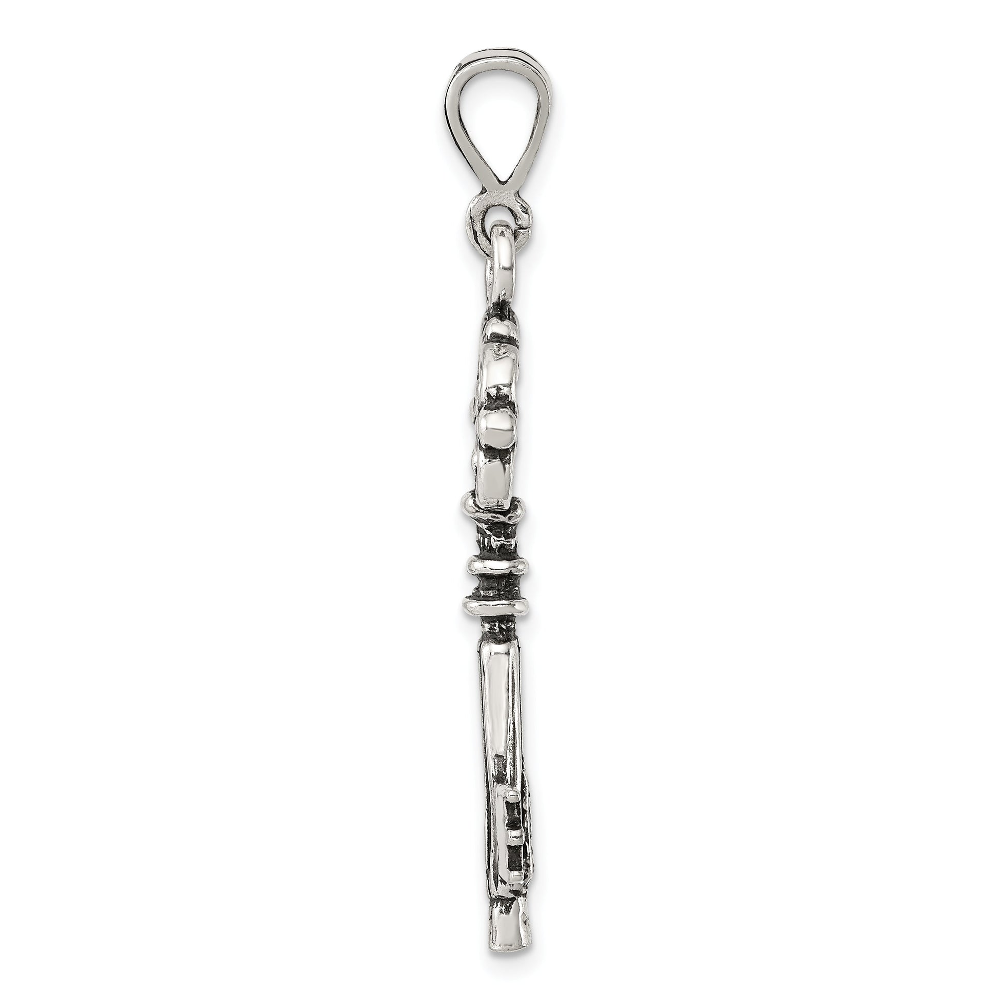 The Sterling Silver Antiqued & Textured Key Pendant adds a touch of elegance to any outfit. Crafted from 925 sterling silver, this pendant boasts a vibrant white hue, thanks to its polished finish. Its solid construction ensures durability, while the intricate detailing lends it a vintage charm. At 36.3 mm in length, the pendant is versatile, making a bold yet refined statement. Made using the traditional casting method, this piece blends classic technique with modern style. Choose the Sterling Silver Antiqued & Textured Key Pendant for a timeless treasure that captures attention.
