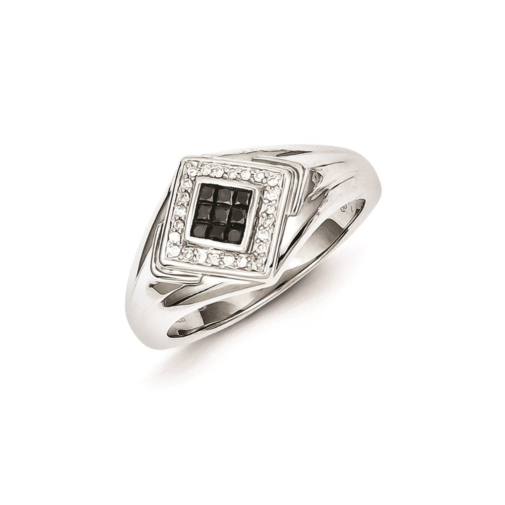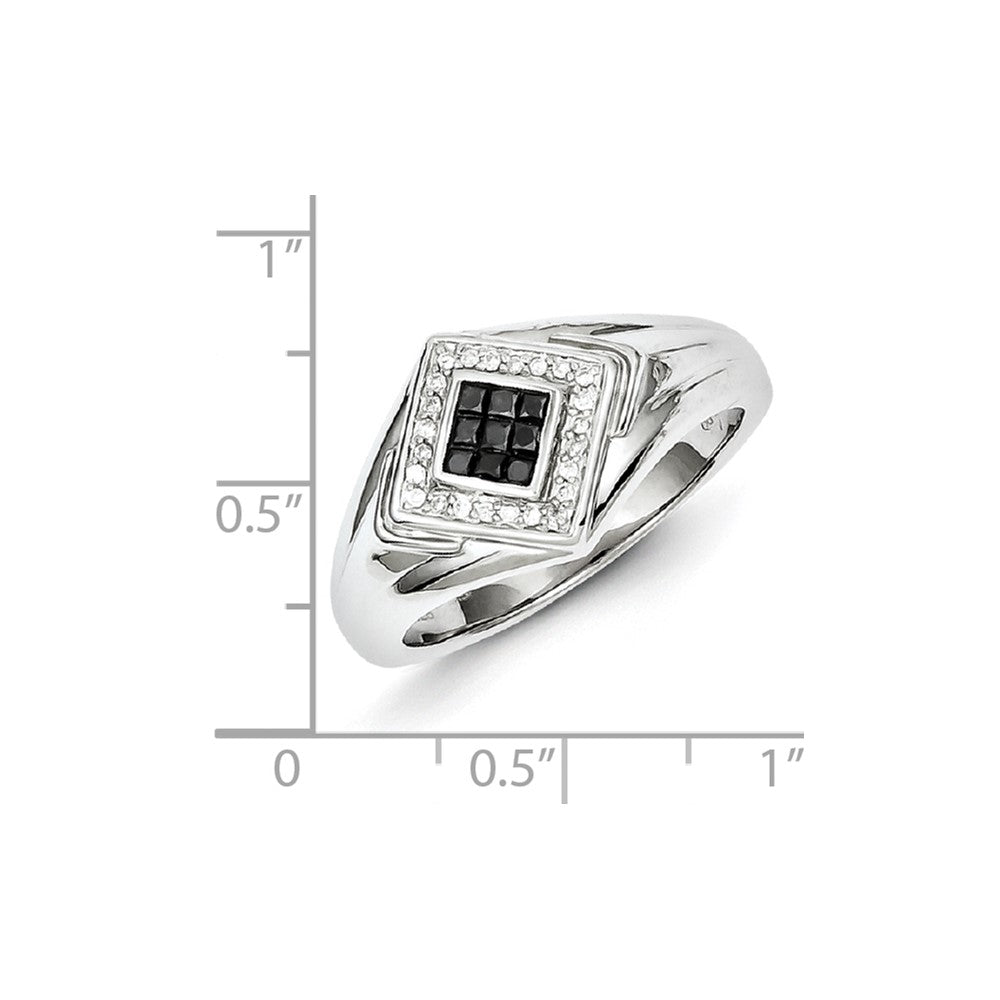 Experience the high sophistication and bold style of this exquisite men's ring. Crafted with premium quality 925 sterling silver, it features stunning black and white natural diamonds in a beautiful combination of square and round shapes. The ring boasts 9 black diamonds and 24 white diamonds, with a total weight of 0.0233 and 0.0050 carats, respectively. The diamonds are carefully arranged with meticulous attention to detail, exhibiting a mesmerizing gleam that is sure to captivate attention. Finished with a luxurious polish, this ring is the perfect accessory for any stylish and modern man.