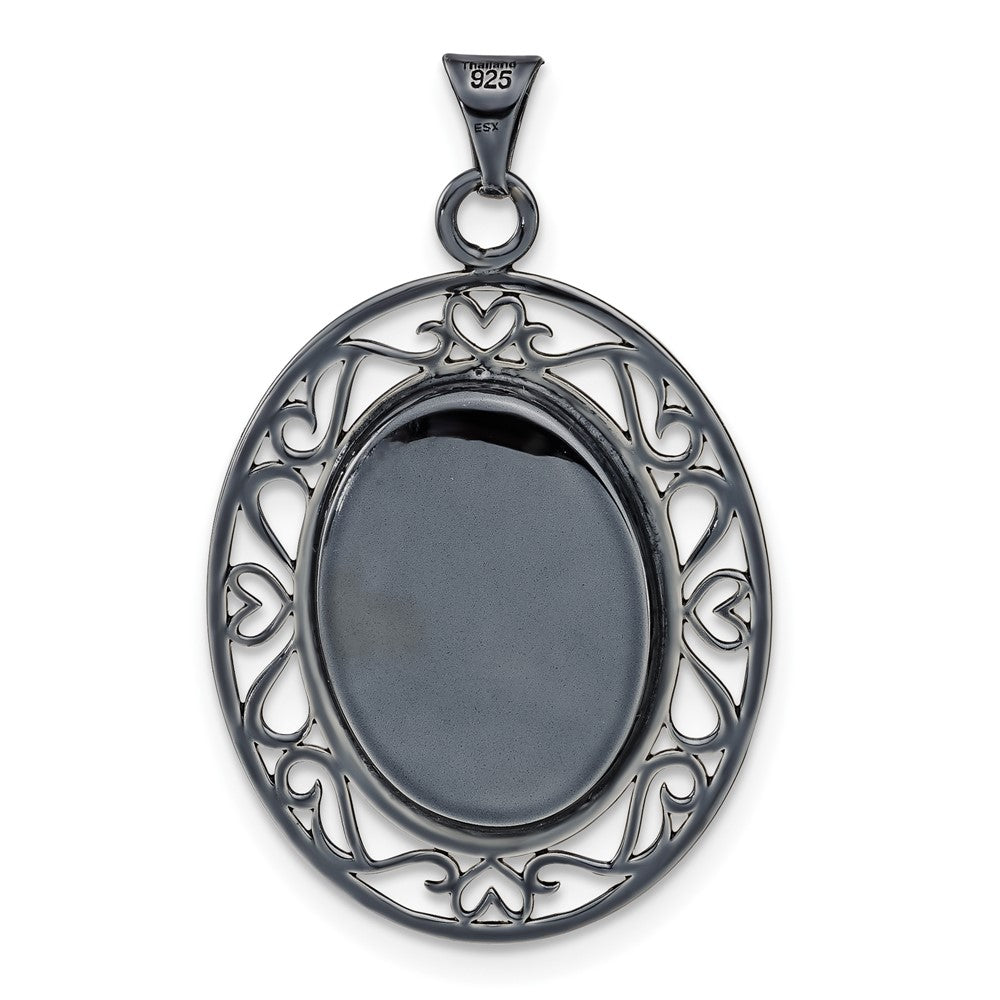 Elevate your elegance with the Sterling Silver Black Ceramic White Swarovski Crystal Oval Pendant. This dazzling piece blends polished sterling silver with striking black ceramic accents. The white Swarovski crystals add a touch of sparkle, perfect for any occasion. Measuring 33.25mm in length and 21.2mm in width, this pendant offers a tasteful balance of bold structure and feminine charm. It captures modern sophistication while providing timeless fashion flair. Drift into a world of luxury with the Sterling Silver Black Ceramic White Swarovski Crystal Oval Pendant adorning your neckline.
