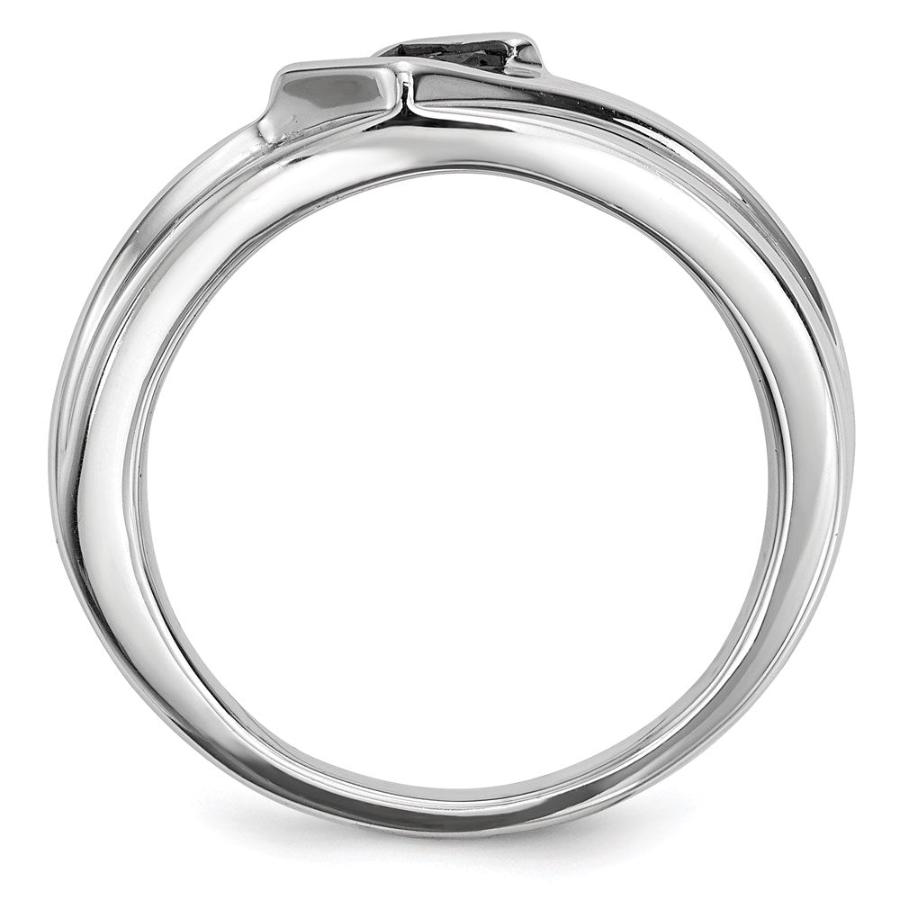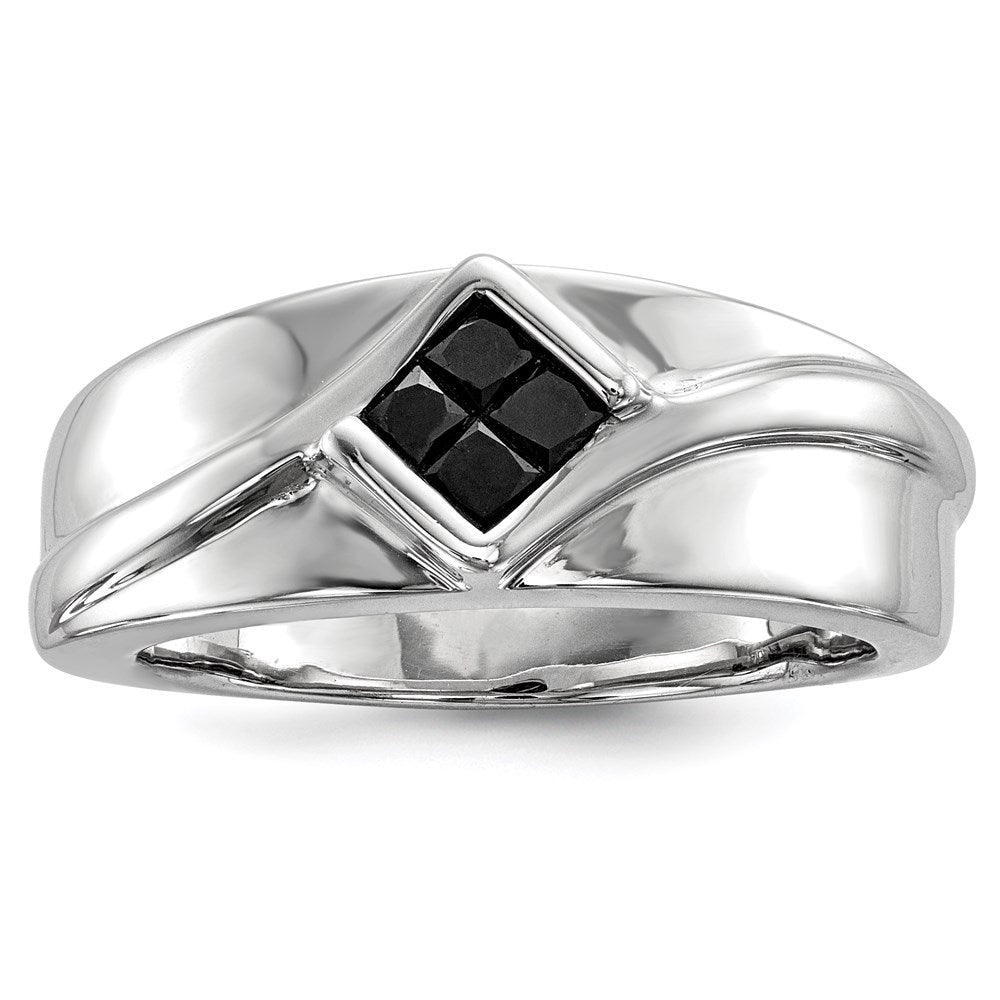 This is a men's ring made of high-quality sterling silver. It features five natural black diamonds that are held in place with an invisible setting. The total weight of the diamonds is 1.38 carats. The ring is solid and has been casted, and it comes in a gift box. It is perfect as jewelry for men and is a great addition to any collection.