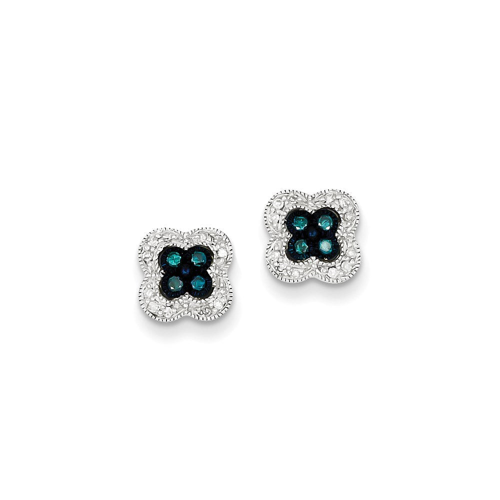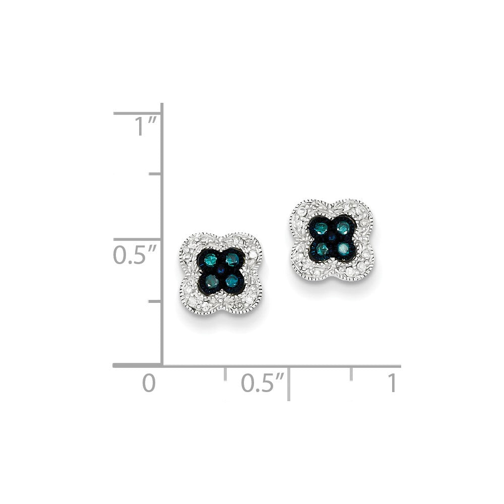 These beautiful earrings are crafted from high-quality sterling silver and are designed in a small flower shape. Featuring stunning blue diamonds, they add a touch of elegance to any outfit. The earrings are polished to a high shine and coated in rhodium plating for durability. They measure 9mm in length and width and are secured with a post and push-back closure. These earrings are perfect for those who love themed jewelry and make a great addition to any jewelry collection. The diamonds are natural and have a total weight of 0.250 carats. These sterling silver earrings are ideal for everyday wear or special occasions.