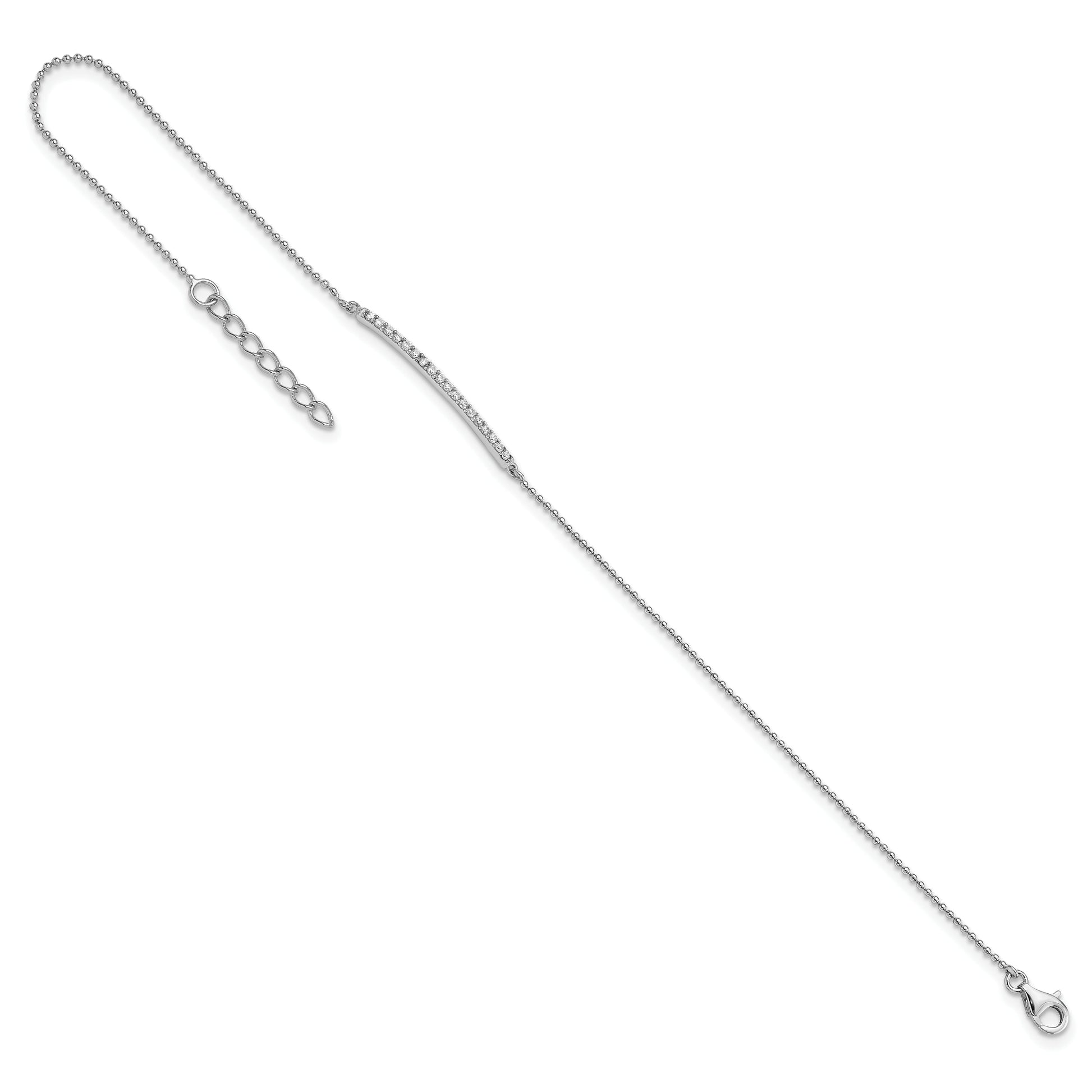 The Sterling Silver Cheryl M Rhodium-Plated Brilliant-Cut Cz Bar Anklet is a blend of elegance and style. Made with high-quality 925 sterling silver, this anklet catches the eye with its polished finish and rhodium plating that provides extra shine and durability. It features 18 sparkling white cubic zirconia stones in a brilliant prong setting, adding a touch of glamour to your every step. The ball chain is 9.5 inches long, with a 1-inch extender for a perfect fit, and a secure lobster clasp ensures it stays in place. Delivered in a chic gift pouch, the Cheryl M anklet is a delightful piece for any outfit.