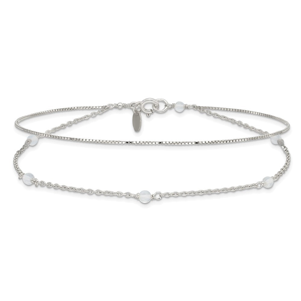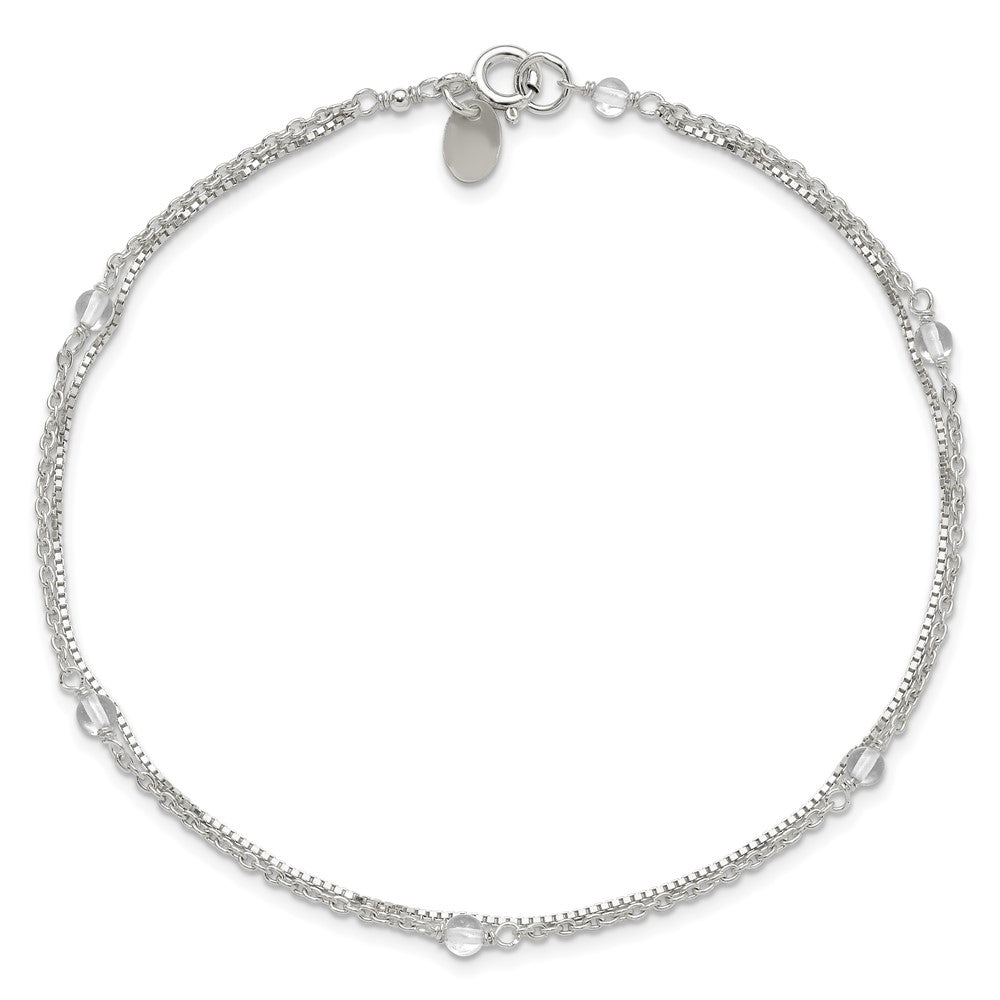 Introducing the Sterling Silver Clear Crystal Beaded Anklet, a stunning piece designed for those who adore fine jewelry with a sparkle. Crafted with 925 sterling silver, this anklet boasts a polished finish that gleams beautifully. It features a single clear crystal as its centerpiece, adding a touch of elegance to any attire. The 9-inch chain is 4mm wide, making it a delicate yet noticeable accessory. A secure spring ring clasp ensures it stays on comfortably. Ideal for women who appreciate solid craftsmanship and timeless style, the Sterling Silver Clear Crystal Beaded Anklet is a must-have in your jewelry collection.