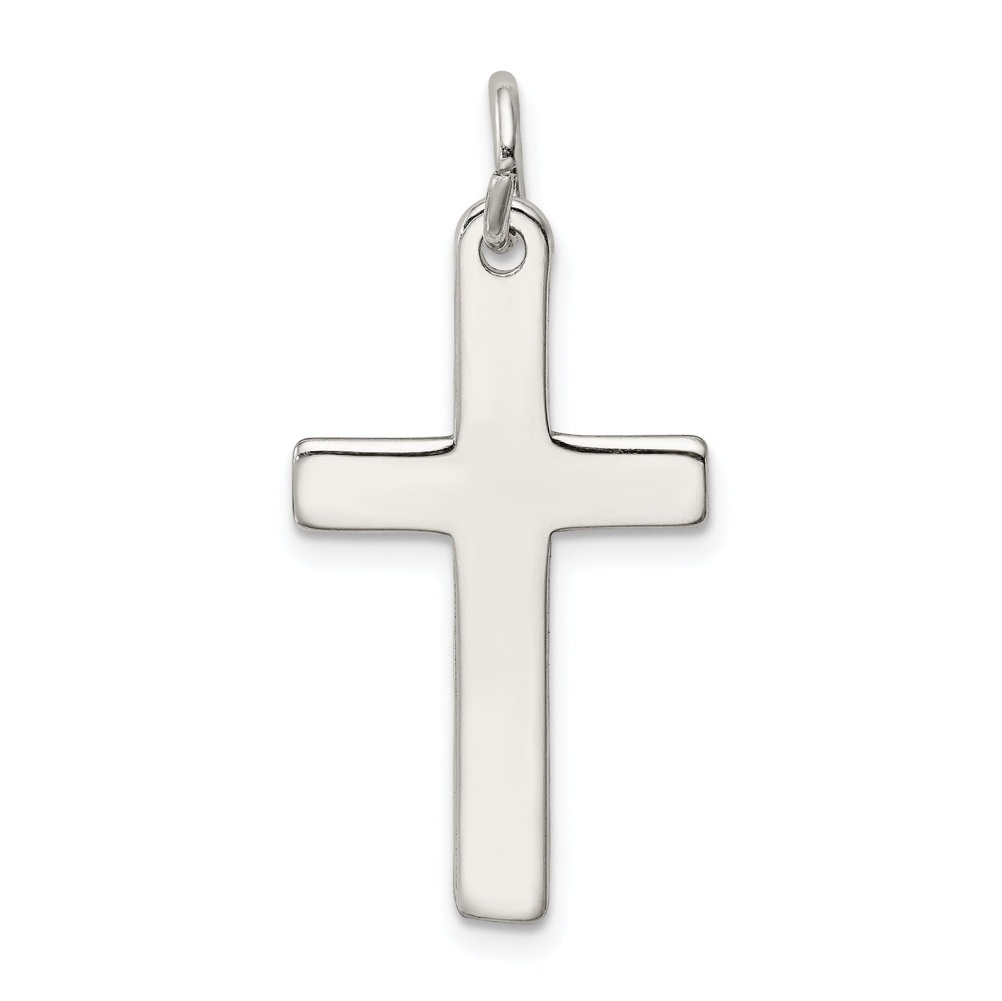 The Sterling Silver Cross Pendant radiates elegance and timeless charm. Crafted from high-quality 925 sterling silver, this piece boasts a solid cast construction ensuring lasting durability. Measuring 28 mm in total length, the cross charm itself features dimensions of 25.15 mm in length and 15.65 mm in width, with a delicate anti-tarnish coating enhancing its brilliant white appeal. The flat back profile and 7 mm bail make it easy to wear with any chain. This pendant is a versatile accessory, perfect for everyday wear or special occasions, adding a subtle touch of sophistication as a symbol of faith.