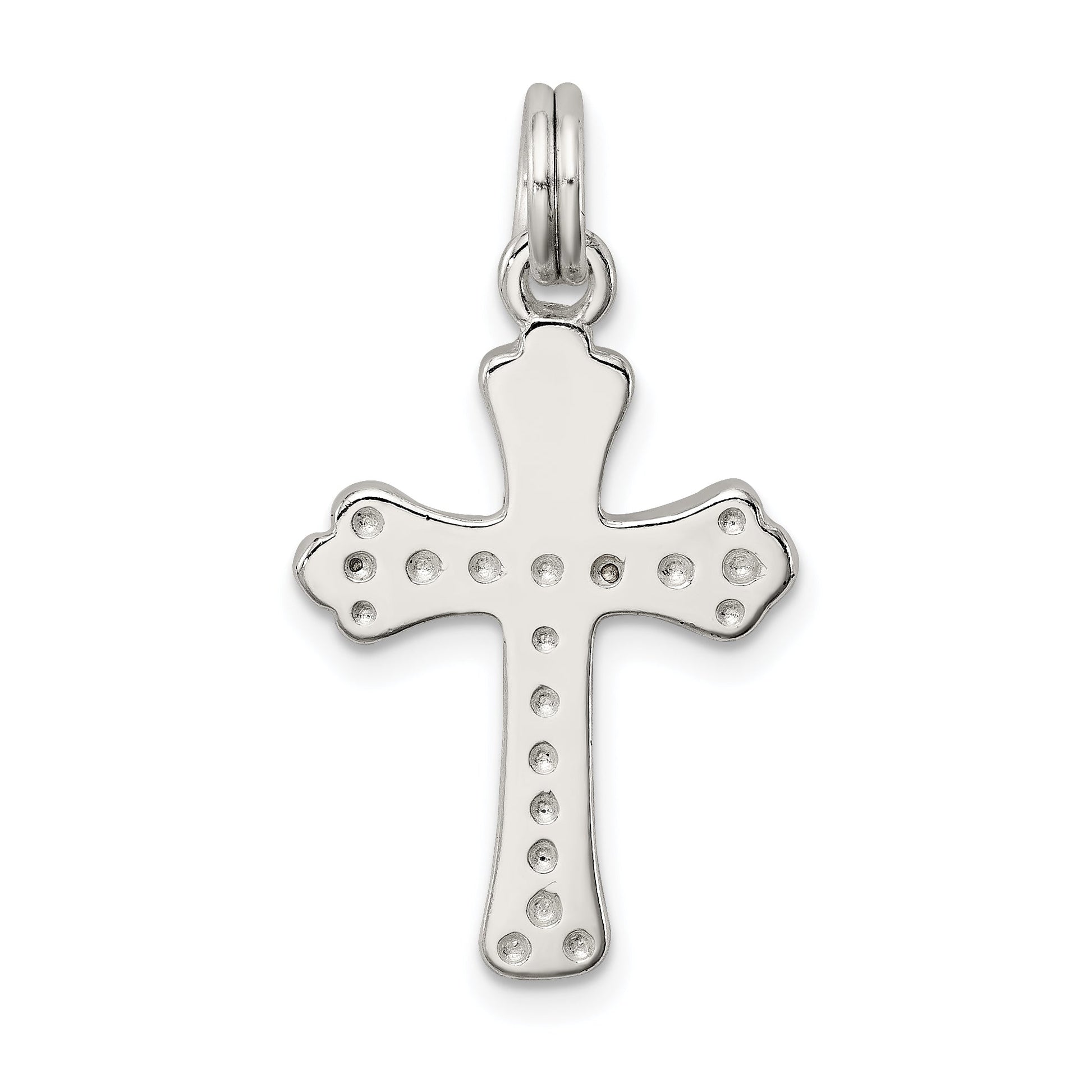 The Sterling Silver Crucifix Charm is a stunning piece of jewelry crafted for elegance. Made from 925 sterling silver, it features a polished finish that shines brilliantly. The charm measures 28 mm in length and 15 mm in width, making it a perfect size for daily wear. Its anti-tarnish coating ensures lasting beauty, while the solid, casted design provides durability. With a flat-back profile, it comfortably rests against the skin. This themed pendant is sold by the unit, offering a timeless addition to any jewelry collection. The Sterling Silver Crucifix Charm embodies sophistication and grace.