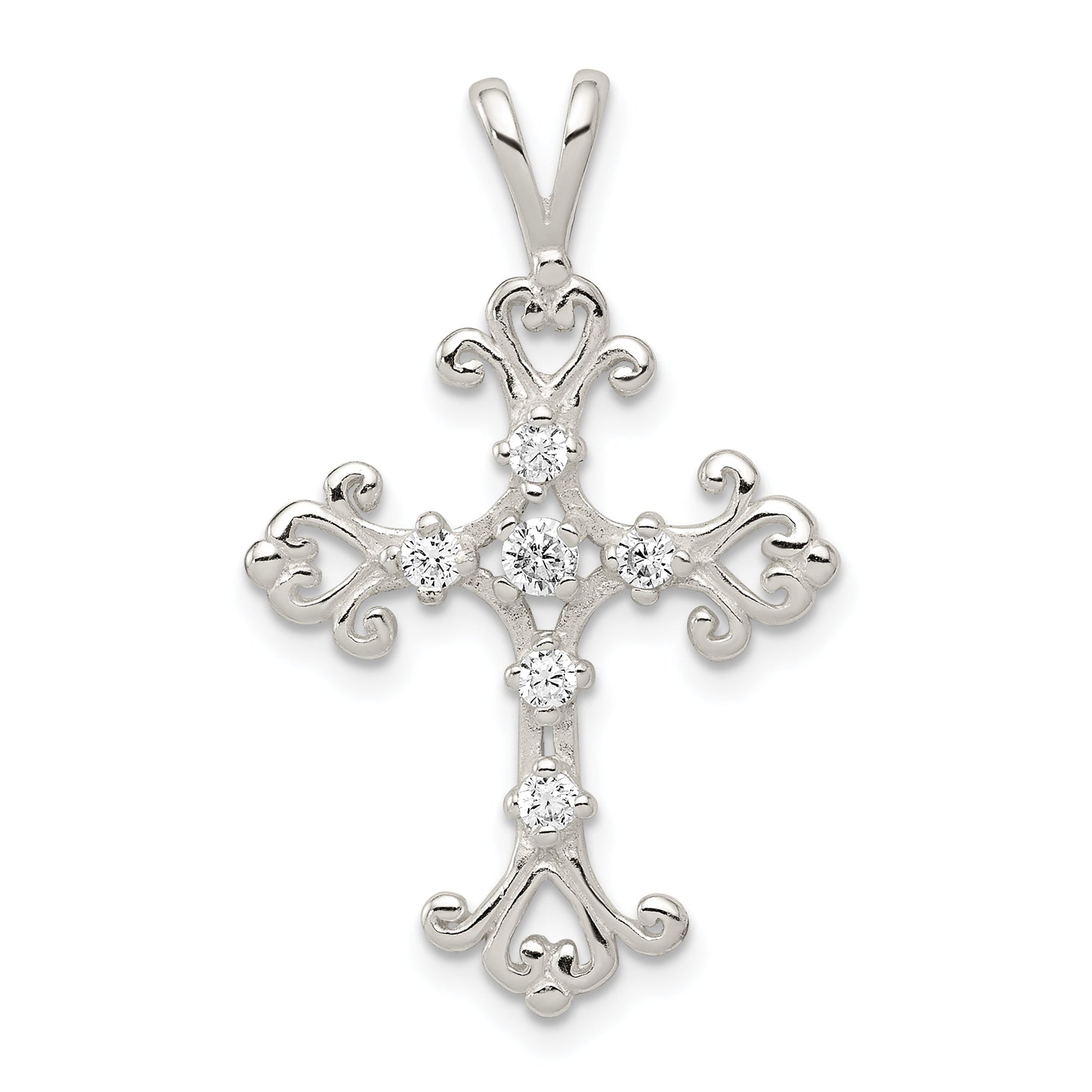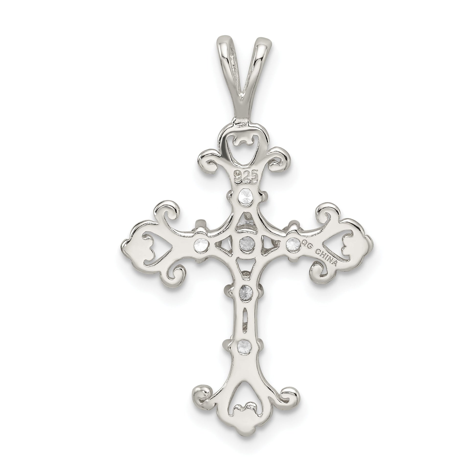 The Sterling Silver CZ Cross Pendant is a stunning piece that speaks volumes of elegance. Made from genuine 925 sterling silver, this pendant showcases a polished finish that gleams with every move. Its highlight features clear synthetic cubic zirconia stones that resemble real diamonds. At 36 mm in length, the pendant makes a bold statement without being overwhelming. The closed-back design adds an intricate touch, while the anti-tarnish coating ensures lasting shine. Every stone's precise setting reflects superb craftsmanship. The Sterling Silver CZ Cross Pendant is the perfect addition to any jewelry collection, blending classic allure with modern style.
