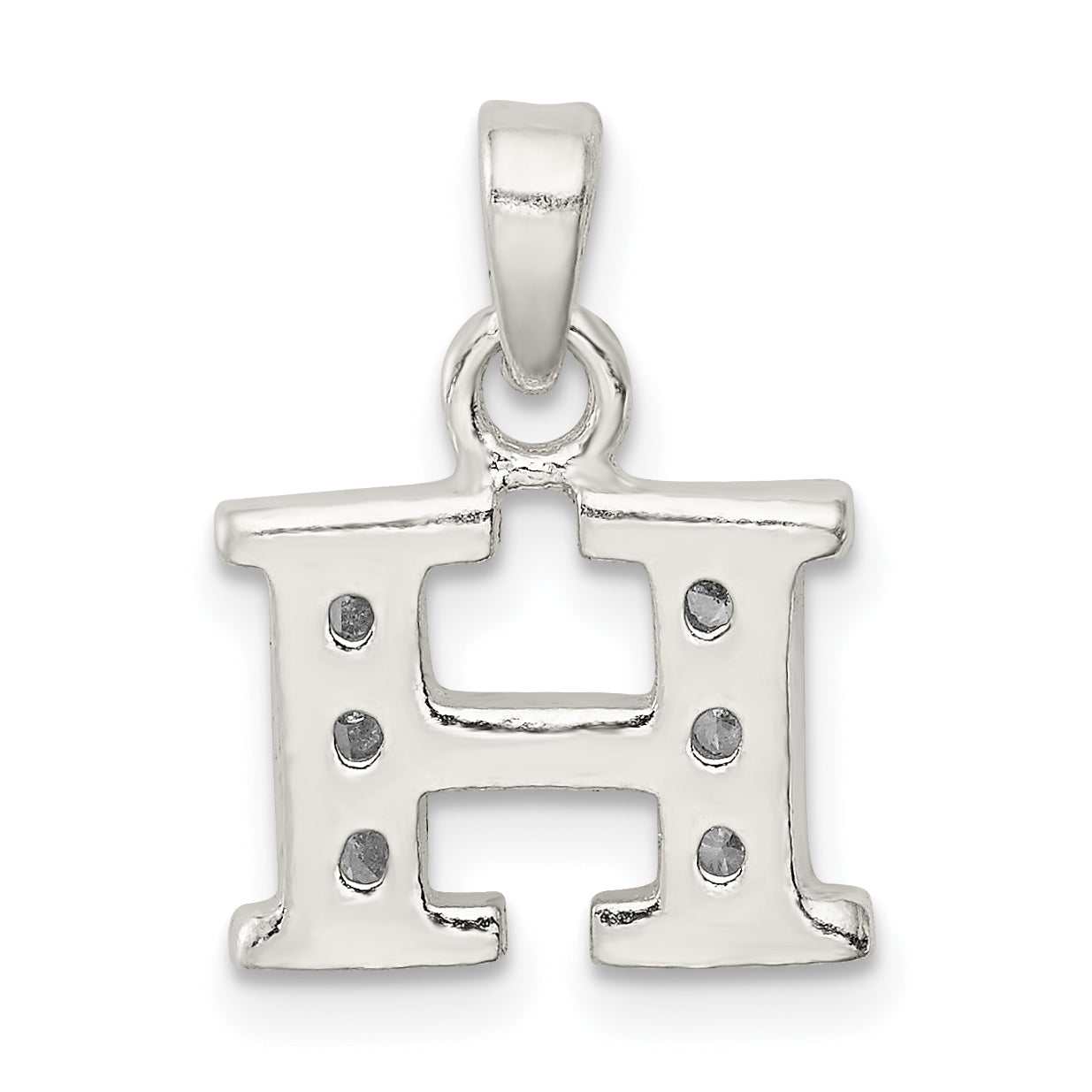 The Sterling Silver CZ Letter H Initial Pendant is an exquisite addition to your jewelry collection. Crafted from 925 sterling silver, this pendant showcases a dazzling array of clear cubic zirconia stones. Each gem exhibits a brilliant shine that rivals a diamond's glow, ensuring all eyes are on you. The anti-tarnish coating ensures lasting beauty, while the solid casting adds durability. This themed pendant is perfect for those who love personalized jewelry with a touch of elegance. Own the Sterling Silver CZ Letter H Initial Pendant and make a bold style statement today.
