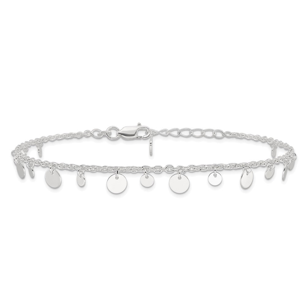 The Sterling Silver Dangling Circle Anklet captivates with its polished elegance and delicate charm. Made from high-quality 925 sterling silver, this anklet flaunts a sleek cable chain measuring 9 inches, complemented by a 1-inch extender for an ideal fit. The tarnish-resistant coating ensures lasting luster, while the secure lobster clasp offers easy wear. The solid sterling silver construction promises durability and refined beauty, making it perfect for any occasion. Whether worn casually or dressed up, this anklet echoes a timeless grace. Embrace your style with the Sterling Silver Dangling Circle Anklet, designed for the modern woman.