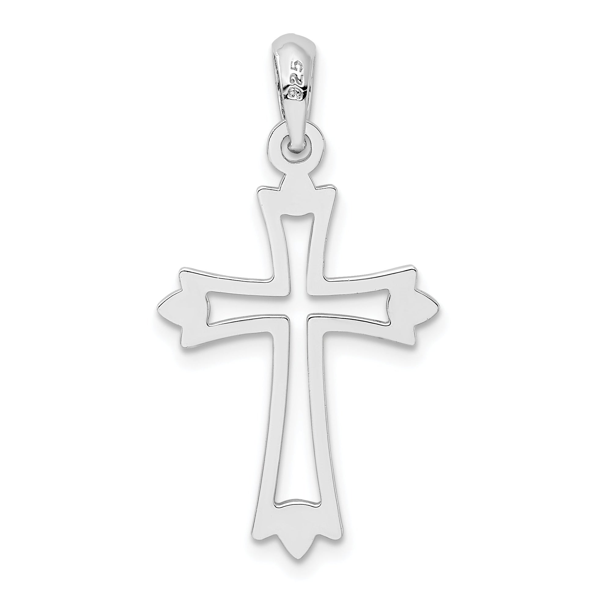 Discover the elegance of the Sterling Silver De-Ani Rhodium-Plated Pointed Ends Cut-Out Cross Pendant. This beautiful piece is fashioned from 925 sterling silver and finished to a brilliant polish. It features a sophisticated rhodium plating that lends it a sleek, silver-toned glow. Its thoughtfully crafted cut-out design measures 23.85 mm in length and 16.62 mm in width, making it distinctly noticeable yet delicately crafted. The flat back ensures comfortable wear. Perfect for those who appreciate craftsmanship with a touch of spiritual style, the Sterling Silver De-Ani Cross Pendant is a must-have addition to your jewelry collection.