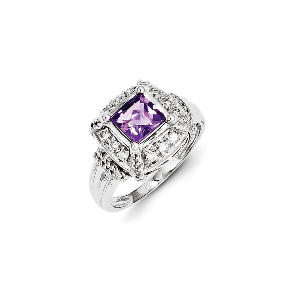 This ring is made of 925 sterling silver and has a square-shaped amethyst stone that weighs 1 carat. There is also a natural diamond stone that weighs a total of...