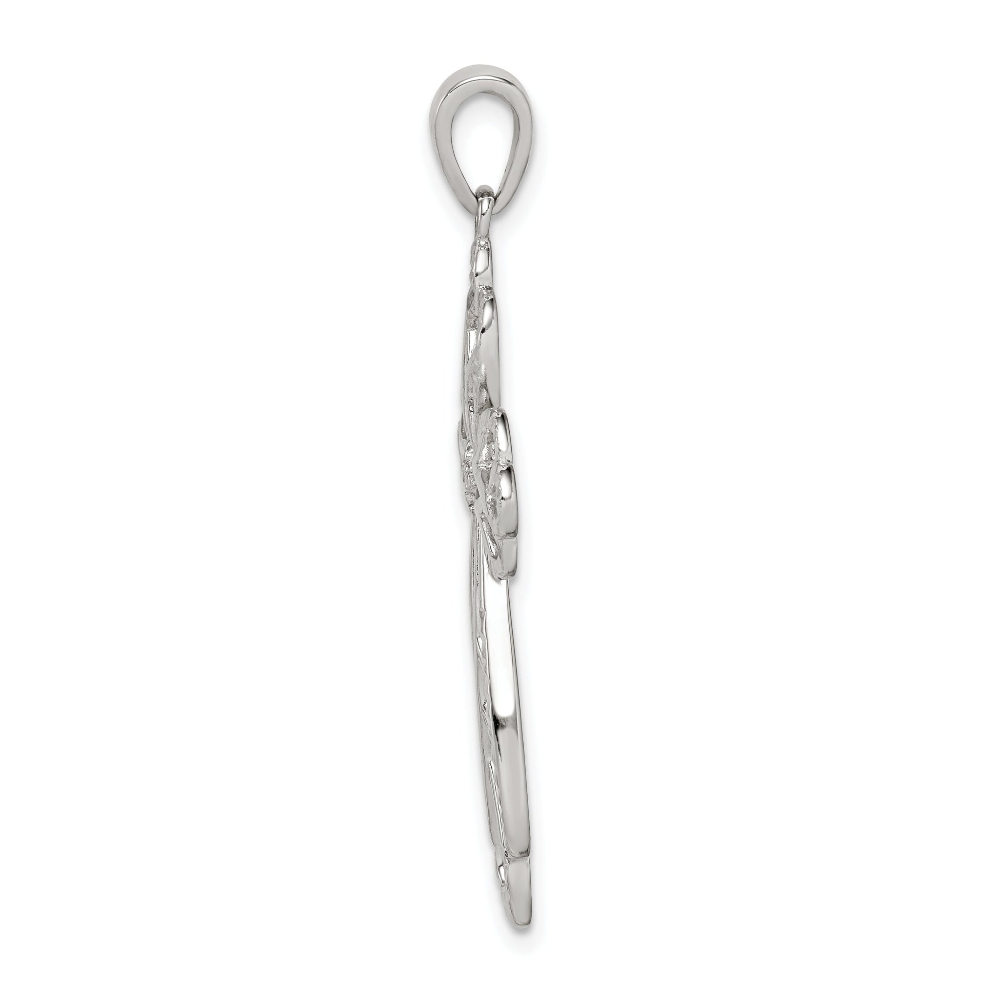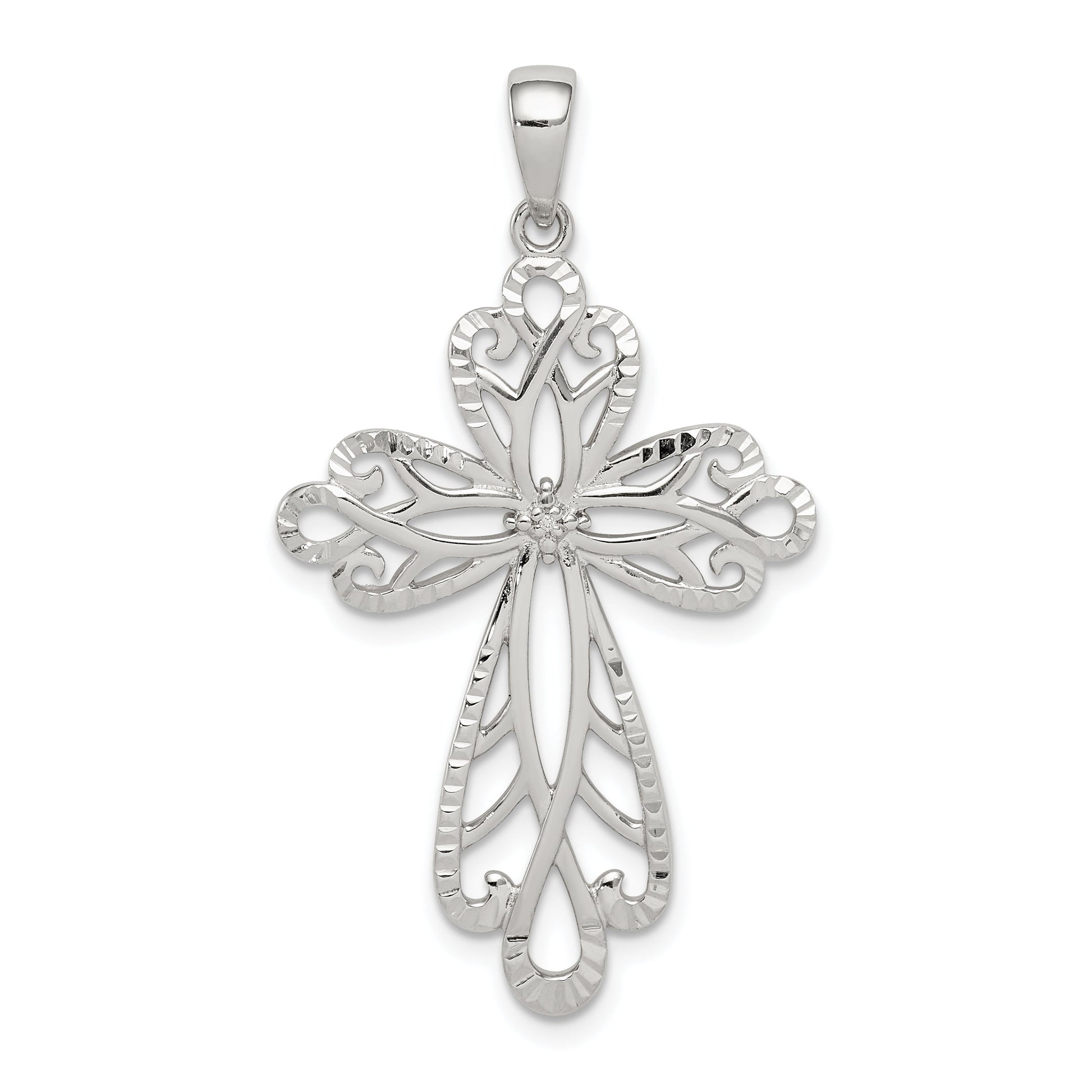 The Sterling Silver Diamond & Diamond-Cut Cross Pendant exudes elegance and spiritual charm. Crafted from 925 sterling silver, this pendant shines with a polished finish. Its diamond-cut texture adds a touch of brilliance, while the anti-tarnish coating ensures lasting beauty. Measuring 35.44 mm in length and 23.01 mm in width, it embodies a perfect blend of size and style. The bail, with a 7.3 mm length and 2.82 mm width, offers stability and ease of wear. Every detail showcases craftsmanship. This Sterling Silver Diamond & Diamond-Cut Cross Pendant is a stunning piece that complements any outfit.