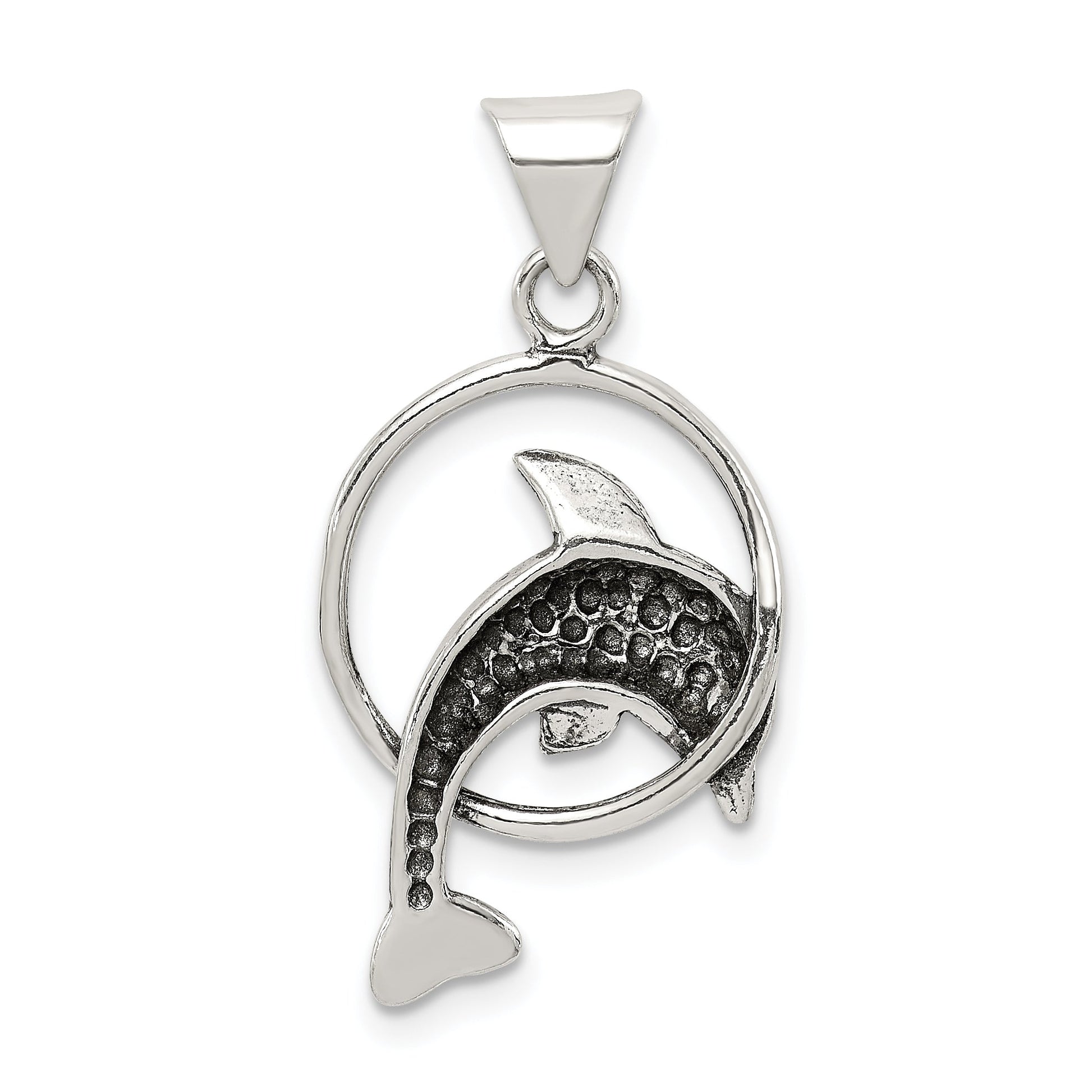 The Sterling Silver Dolphin Charm makes a splash with its detailed and antique finish. Crafted from high-quality 925 sterling silver, this charm captures the grace of the ocean with its sleek lines and solid design. The charm measures 28mm in length and 15mm in width, making it a perfect piece for any jewelry collection. Its anti-tarnish coating ensures lasting shine, while the 4.7mm bail width allows for easy attachment to any chain. Add the Sterling Silver Dolphin Charm to your ensemble to embrace a timeless seaside elegance.