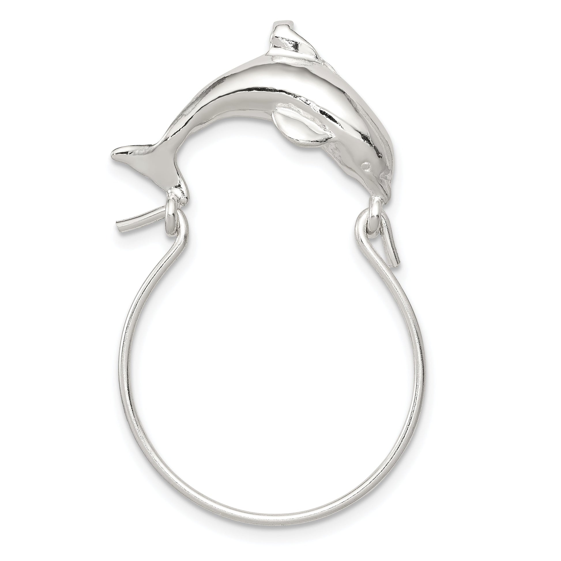 The Sterling Silver Dolphin Charm Holder brings a touch of grace and charm to your jewelry collection. Crafted from genuine 925 sterling silver, this pendant features a polished finish, radiating a brilliant shine. Its generous length of 37mm and width of 25mm offer ample space to showcase your favorite charms. The anti-tarnish coating ensures lasting beauty, while the solid, cast construction speaks to its quality. Perfect for adding a playful yet elegant note to your ensemble, the Sterling Silver Dolphin Charm Holder is a must-have for charm enthusiasts.