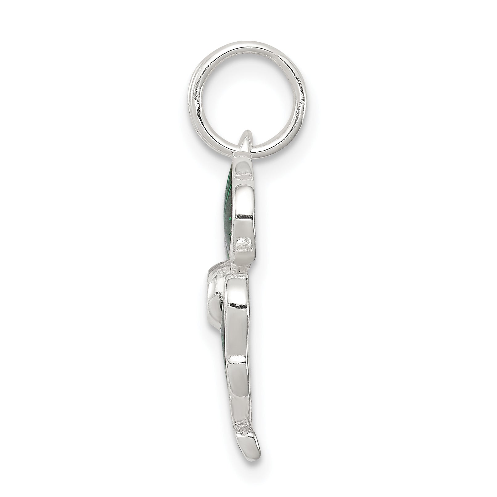 The Sterling Silver Enameled 4-Leaf Clover with Green Glass Stone Charm captures the spirit of good fortune. Crafted from high-quality 925 sterling silver, this radiant charm features a polished finish and a protective anti-tarnish coating, ensuring its lasting shine. The vibrant green enamel and glass stone accentuate the four-leaf clover, symbolizing luck and hope. Measuring 22 mm in length and 12 mm wide, this charm boasts a solid, durable design achieved through precise casting. Wear this delightful piece as a pendant or charm, and carry a touch of luck with you always.
