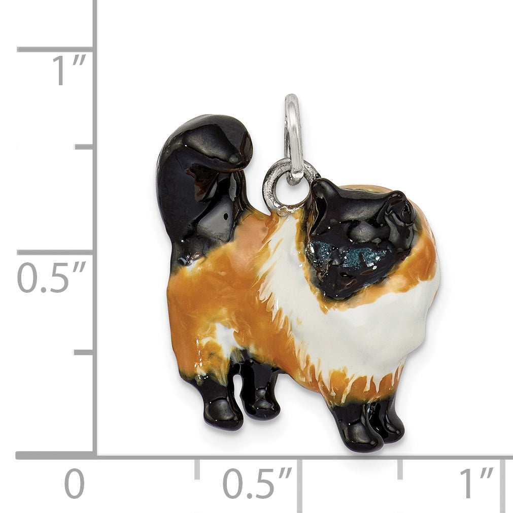 Embrace your love for feline charm with the Sterling Silver Enameled Calico Cat Charm. Crafted from premium 925 sterling silver, this enchanting pendant showcases the delightful details of a calico cat, enhanced with vibrant enamel accents. Measuring 20 mm in length and 19 mm in width, the charm is plated with a radiant rhodium finish, ensuring a lustrous silver tone that captures attention. Perfect for adding a playful touch to any jewelry collection, this charm celebrates both elegance and fun. Enjoy the whimsical magic of the Sterling Silver Enameled Calico Cat Charm today.