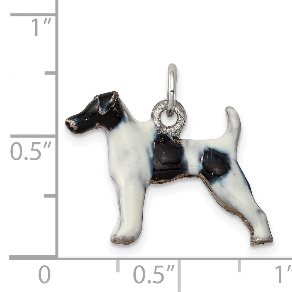 Meet the Sterling Silver Enameled Smooth Hair Fox Terrier Charm, a charming piece crafted for dog lovers and jewelry enthusiasts alike. Made from 925 sterling silver, this charm boasts a sleek, three-dimensional design with eye-catching enamel accents. Measuring 18 mm in length and 22 mm in width, it captures the essence of the beloved Fox Terrier in a compact, wearable form. The themed charm attaches securely with a 1 mm bail, making it an ideal addition to any pendant or charm bracelet. Capture the playful spirit of the Sterling Silver Enameled Smooth Hair Fox Terrier Charm today.