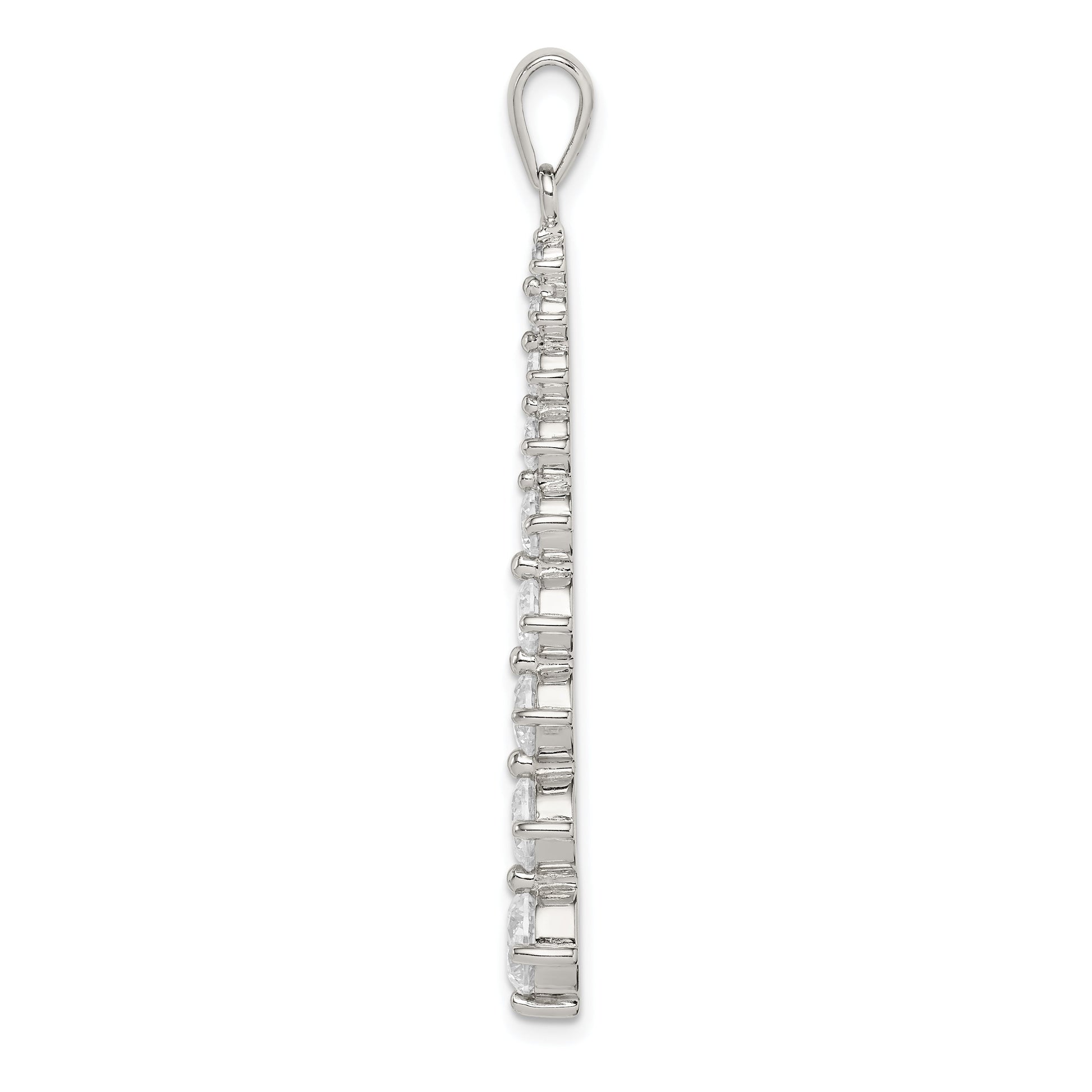 Introducing the Sterling Silver Fancy CZ Pendant, a brilliant piece crafted for the modern jewelry lover. This pendant marries the elegance of polished 925 sterling silver with the sparkle of nine round, white cubic zirconia stones. Each stone is synthetic, offering a stunning, lifelike brilliance that can rival even the finest diamonds. Measuring 44.69 mm in length and 7.62 mm in width, this pendant offers a sophisticated charm suitable for any occasion. An anti-tarnish coating ensures it remains lustrous through time. Elevate your style with the Sterling Silver Fancy CZ Pendant and let its timeless beauty shine.
