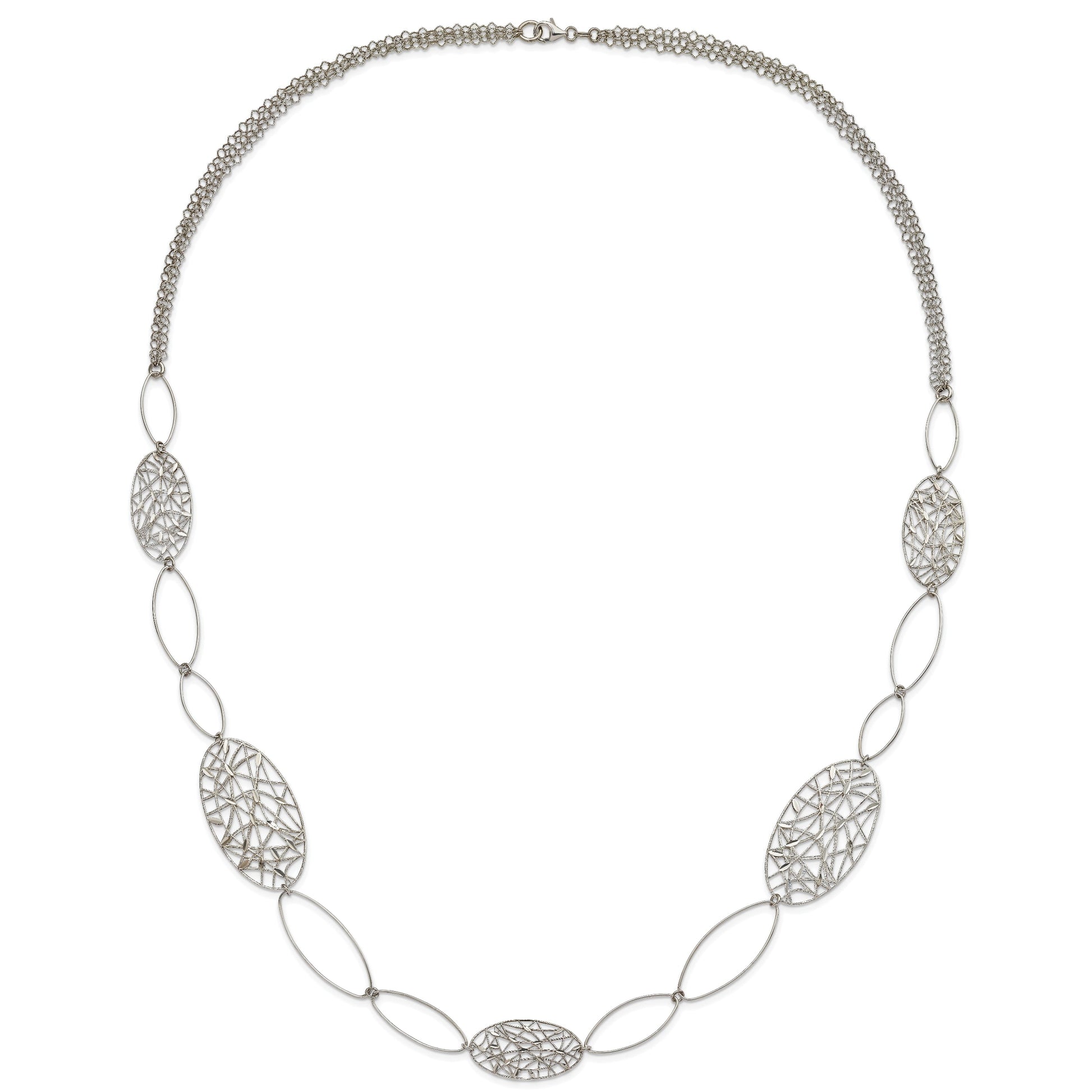 The Sterling Silver Fancy Oval Link Necklace is a true statement piece that adds elegance to any outfit. Made from high-quality 925 sterling silver, this necklace boasts a polished finish that shines with each angle. Its generous 41-inch length showcases oval links, offering a bold design that stands out from the crowd. With a substantial width of 32mm, this piece has a presence that can't be ignored. A fancy lobster clasp ensures both style and security. Let this stunning Sterling Silver Fancy Oval Link Necklace elevate your jewelry collection to new heights.