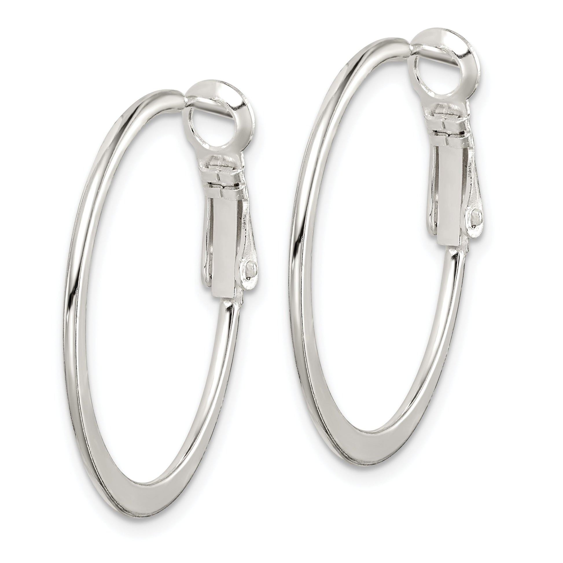 The Sterling Silver Flat Hoop Earrings are a simple yet elegant addition to any jewelry collection. Crafted from quality 925 sterling silver, they boast a bright, polished finish. These earrings measure 30 mm in length and 29 mm in width, making them an ideal, versatile choice for any occasion. The design features an anti-tarnish coating, ensuring they maintain their stunning shimmer over time. With solid construction through stamping, they offer durability and style for everyday wear. The omega clip back closure ensures a secure fit. Add a touch of sophistication with the Sterling Silver Flat Hoop Earrings.