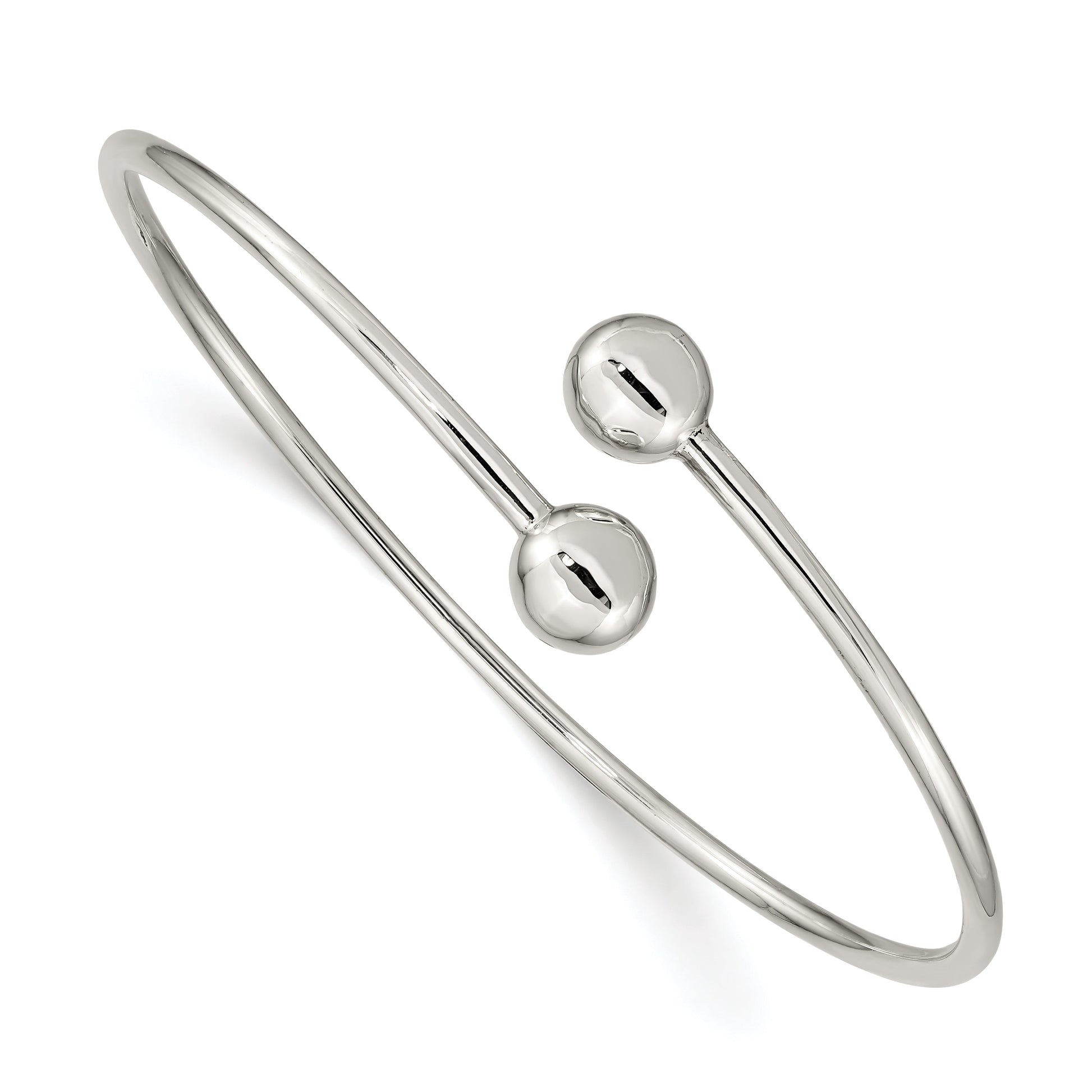 The Sterling Silver Flexible Bangle is a stunning piece that combines elegance with versatility. Crafted from 925 sterling silver, it boasts a polished finish that catches the eye. Designed as a slip-on cuff, this bangle offers ease of wear with its flexible design. Perfect for women who appreciate both style and comfort, this bangle adds a touch of sophistication to any outfit. With its sleek white color and subtle bead elements, it's a must-have for any jewelry collection. Elevate your look with the Sterling Silver Flexible Bangle.