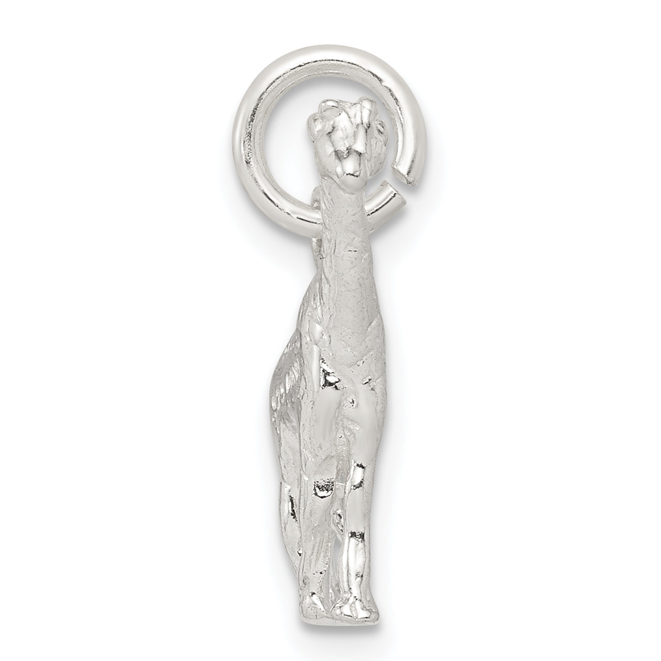 The Sterling Silver Giraffe Charm embodies elegance with a playful twist. Made from high-quality 925 sterling silver, it boasts a polished finish that catches the light beautifully. This 3D charm measures 19mm in length and 11mm in width, with an 18mm charm element length, making it a perfect pendant for any necklace or bracelet. Its anti-tarnish coating ensures lasting shine. This finely casted piece is white in color, accentuating its graceful design. The bail is 5mm long, with a width of 1mm, allowing easy attachment. Add a whimsical touch to your jewelry collection with the Sterling Silver Giraffe Charm.