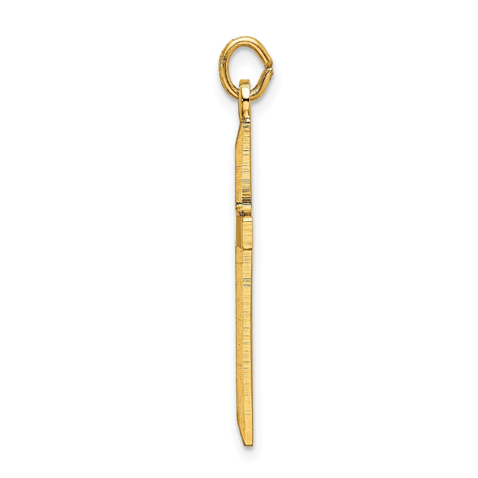 The Sterling Silver Gold-Plated Polished and Satin Cross Pendant offers an exquisite blend of elegance and faith. Made from 925 sterling silver, this pendant features a dazzling gold-plated finish with a distinctive mix of polished and satin textures. Its dimensions, measuring 28.8 mm in length, 15.2 mm in width, and a slender 1.4 mm thickness, create a delicate yet solid piece. Crafted through a die-struck process, this cross pendant showcases fine durability. The gold tone plating enhances its timeless appeal. Embrace its charm with the Sterling Silver Gold-Plated Polished and Satin Cross Pendant, an accessory that elevates any outfit.