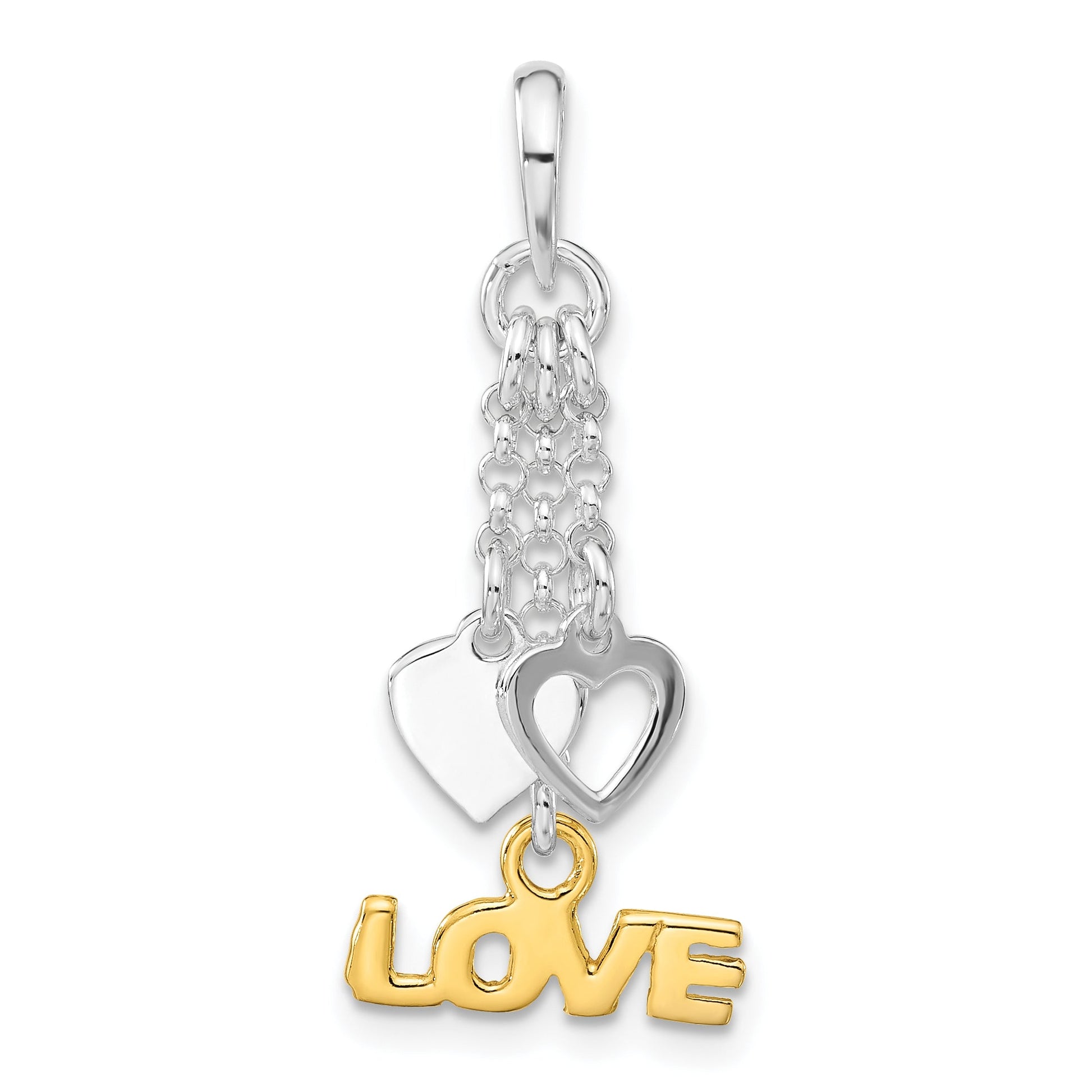 The Sterling Silver & Gold-Tone Love and Hearts Dangle Pendant combines elegance with playful charm. Crafted with 925 sterling silver, it boasts a polished finish that glimmers with every move, making it perfect for any occasion. The 30.6mm length adds a touch of sophistication, while the unique three-piece design adds intrigue. Its delicate hearts happily dangle, promising to catch eyes and compliments. This themed piece, enhanced with a gold-tone plating, radiates warmth and love. The Sterling Silver & Gold-Tone Love and Hearts Dangle Pendant captures beauty and affection in a charming accessory ideal for any woman's collection.