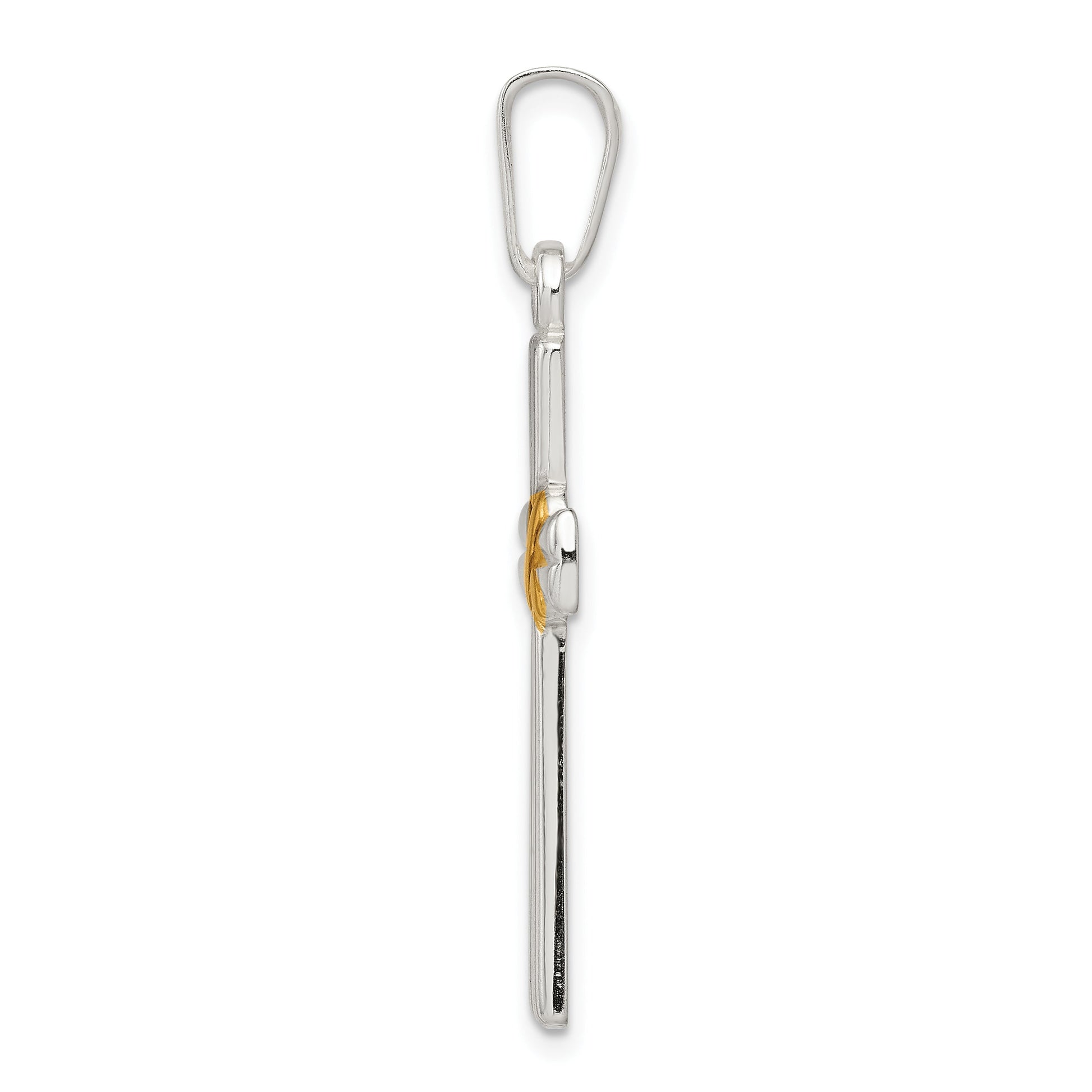 Introducing the Sterling Silver & Gold-Tone Polished Latin Cross Pendant, where timeless elegance meets modern craftsmanship. Made from 925 sterling silver, this pendant features a polished finish that catches the light beautifully. The cross measures 27.62 mm in length and 17 mm in width, ensuring it's a striking piece. Its anti-tarnish coating assures lasting shine, while solid construction promises durability. The piece undergoes meticulous stamping during production, highlighting its quality. With a flat-back design, this themed charm lies comfortably on the skin. Embrace both style and grace with the Sterling Silver & Gold-Tone Polished Latin Cross Pendant.
