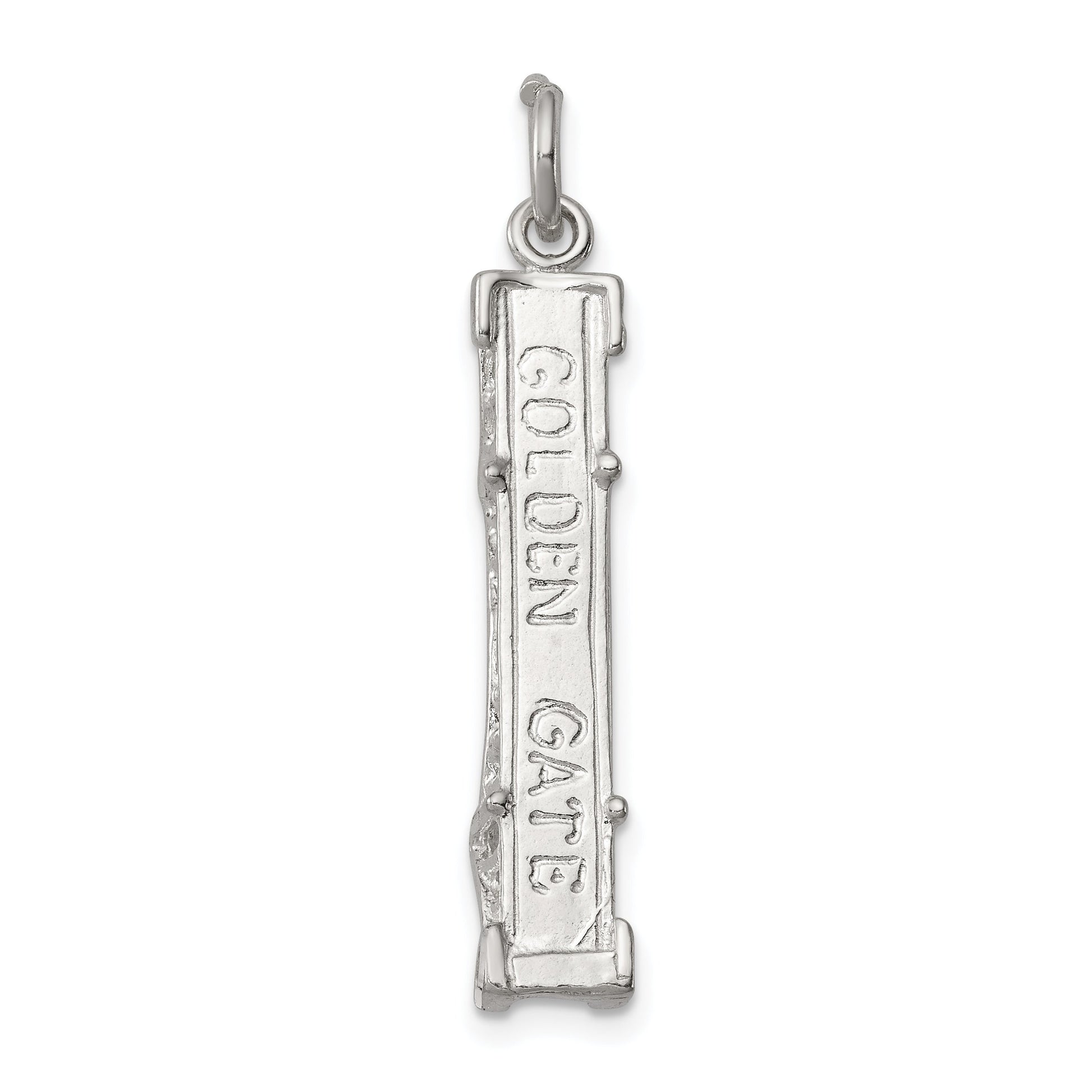 Embrace the allure of a city icon with the Sterling Silver Golden Gate Bridge Charm. Crafted from top-grade 925 sterling silver, this charm showcases polished elegance. It impresses with its 30 mm length and 8 mm width, making it a sizeable addition to any jewelry collection. The reversible design ensures versatility, while the intricate casting process highlights its detailed craftsmanship. Ideal for adding a touch of thematic flair, this charm fits perfectly on any chain. Celebrate the architectural wonder in style with the Sterling Silver Golden Gate Bridge Charm.