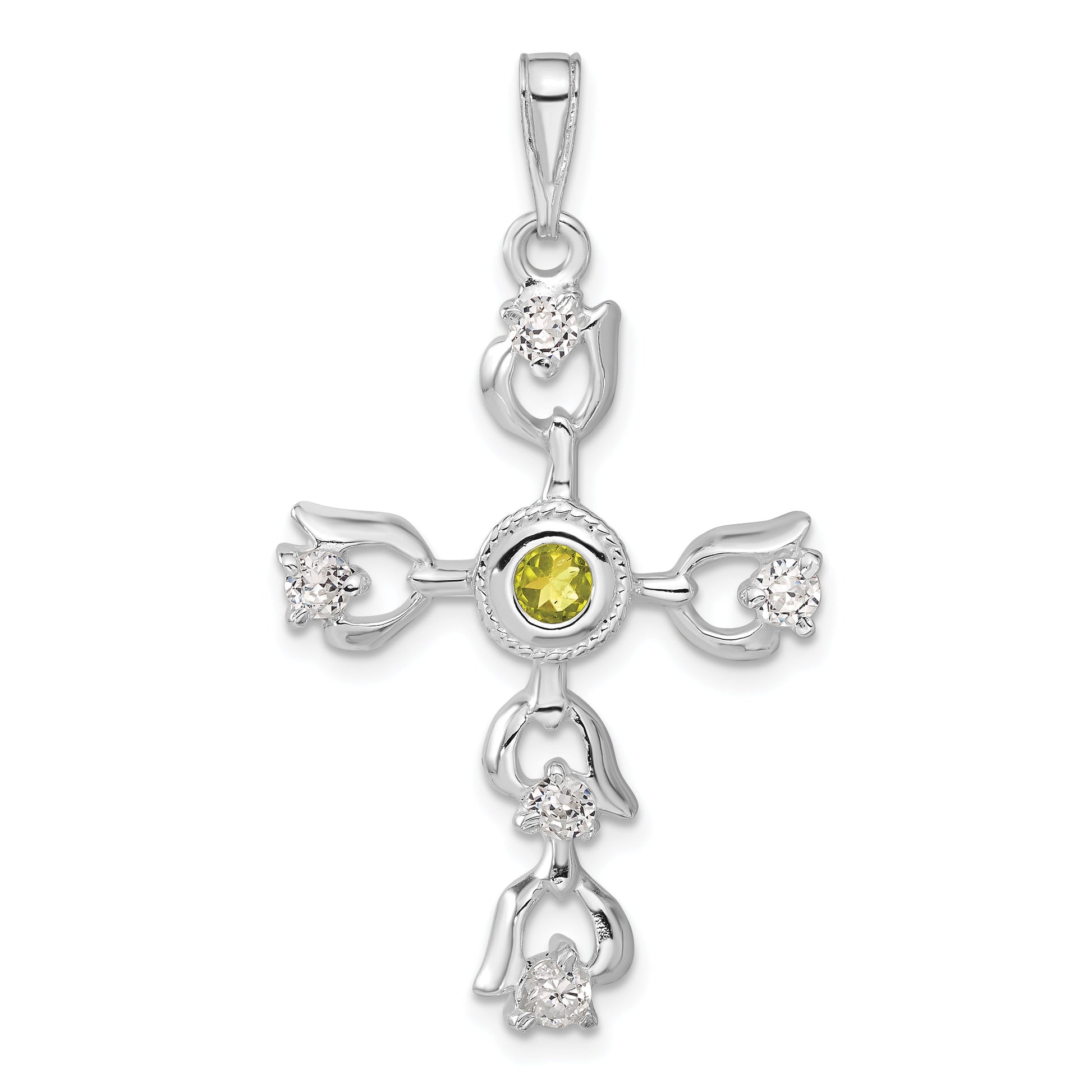 The Sterling Silver Green & Clear CZ Cross Pendant is a stunning piece for any jewelry collection. Crafted from premium 925 sterling silver, this pendant showcases vibrant multi-color cubic zirconia stones. Each stone sparkles brilliantly, adding elegance and charm. The cross measures 43.3 mm in length and 24.1 mm in width, exhibiting a polished finish that enhances its luster. Fashioned for women and ideal for special occasions, the pendant combines traditional symbolism with contemporary style. The Sterling Silver Green & Clear CZ Cross Pendant is a perfect gift for those who appreciate beauty in simplicity.