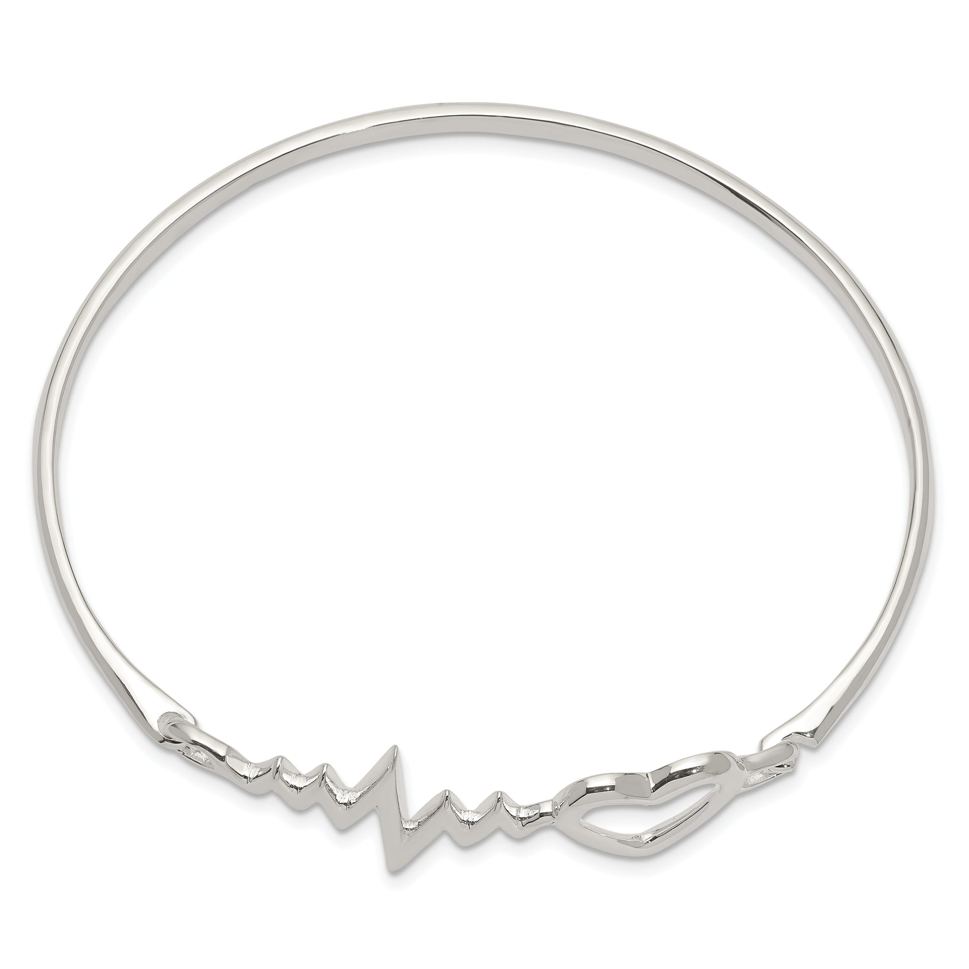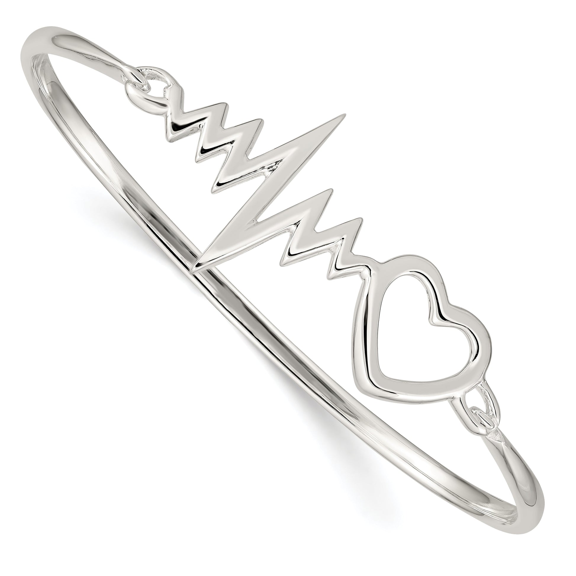 The Sterling Silver Heartbeat Hinged Bangle is a stunning piece that elevates any look. Crafted with 925 sterling silver, its polished finish captures light beautifully, making each movement sparkle. The bangle is designed with a sleek 3mm width, giving it a sophisticated yet subtle presence on your wrist. Featuring a secure hook clasp, it ensures a snug fit for all-day wear. This themed bracelet, ideal for women, symbolizes elegance and grace in its every line. Wear the Sterling Silver Heartbeat Hinged Bangle and let your accessories speak volumes.