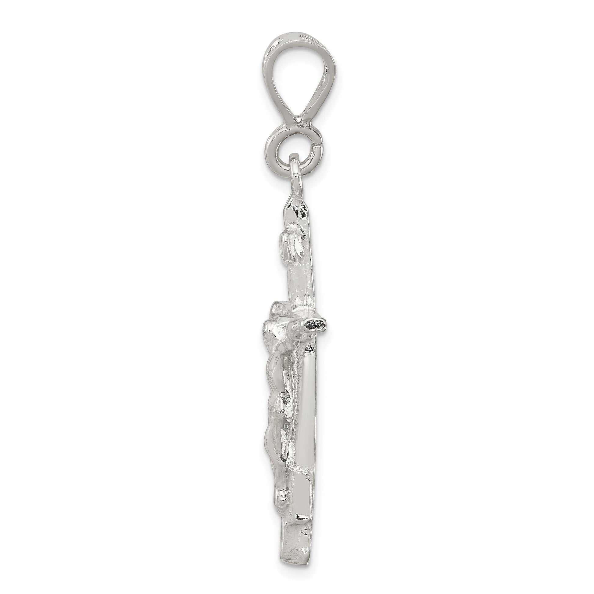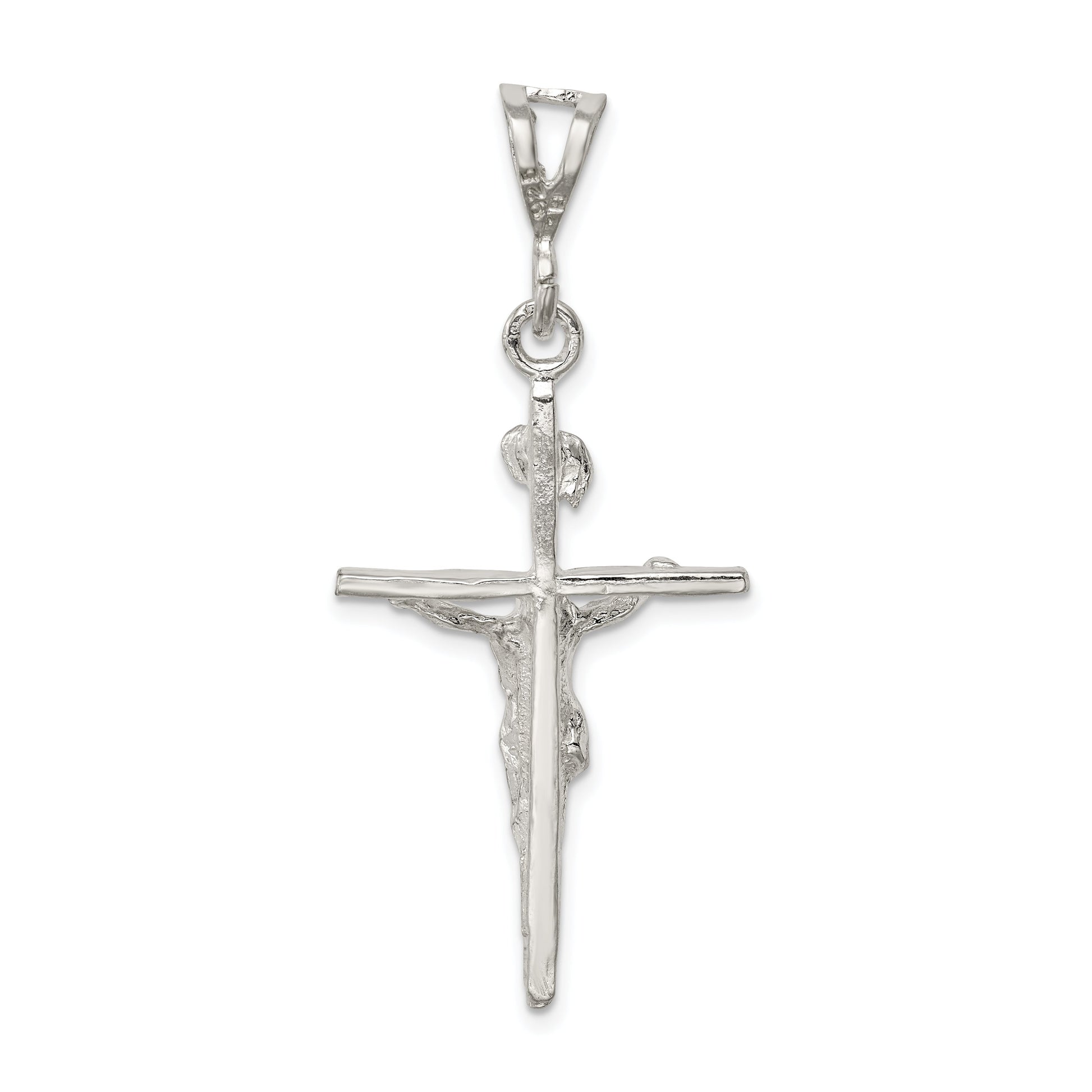 The Sterling Silver Inri Crucifix Pendant is a timeless piece of elegance. Crafted from high-quality 925 sterling silver, it boasts a polished finish, ensuring it shines in any light. The pendant measures 44 mm in length and 21 mm in width, making it a noticeable addition to any jewelry collection. Its anti-tarnish coating keeps it looking new, while the solid casted design guarantees durability. This themed pendant features a closed back profile, adding to its seamless appearance. Embrace classic design with the Sterling Silver Inri Crucifix Pendant, a refined choice for daily wear.