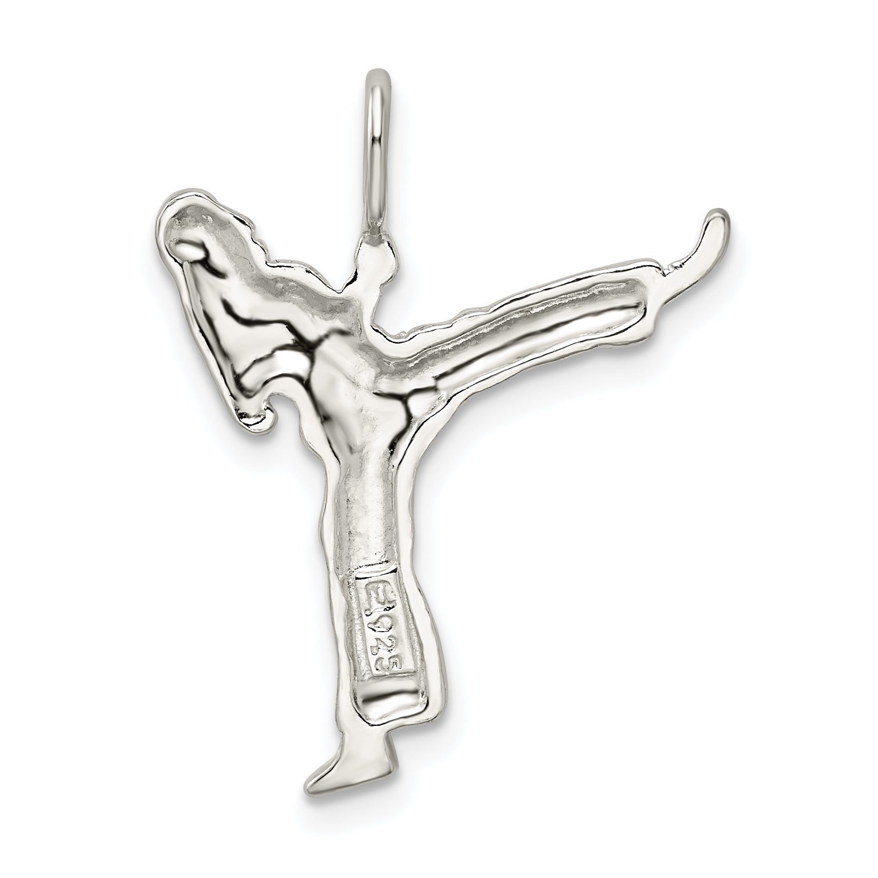 The Sterling Silver Karate Charm captures the spirit of martial artistry. Expertly crafted from 925 sterling silver, this charm boasts a gleaming polished finish. Its anti-tarnish coating keeps it looking fresh for years. Measuring 28 mm in length and 22 mm in width, it's perfect as a stand-alone pendant or an eye-catching addition to charm bracelets. The charm showcases a solid structure and open-back profile, highlighting its unique karate-themed design. Bring a touch of elegance and dynamic flair with the Sterling Silver Karate Charm.