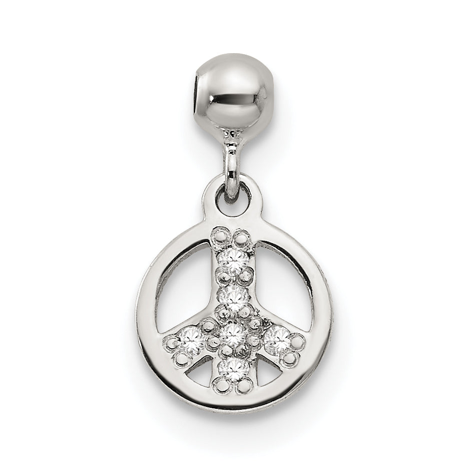 Dive into elegance with the Sterling Silver Mio Memento Cz Dangle Peace Charm. Crafted from genuine 925 sterling silver, this charm features a sleek, solid design perfect for any themed jewelry collection. Measuring 12.2 mm in length, with an eye-catching width of 6.7 mm, it is both delicate and striking. The charm showcases a peace sign, hanging gracefully to symbolize tranquility. Its white color offers a crisp, classic look that complements any outfit. Embrace peace and style with the Sterling Silver Mio Memento Cz Dangle Peace Charm as your perfect accessory.