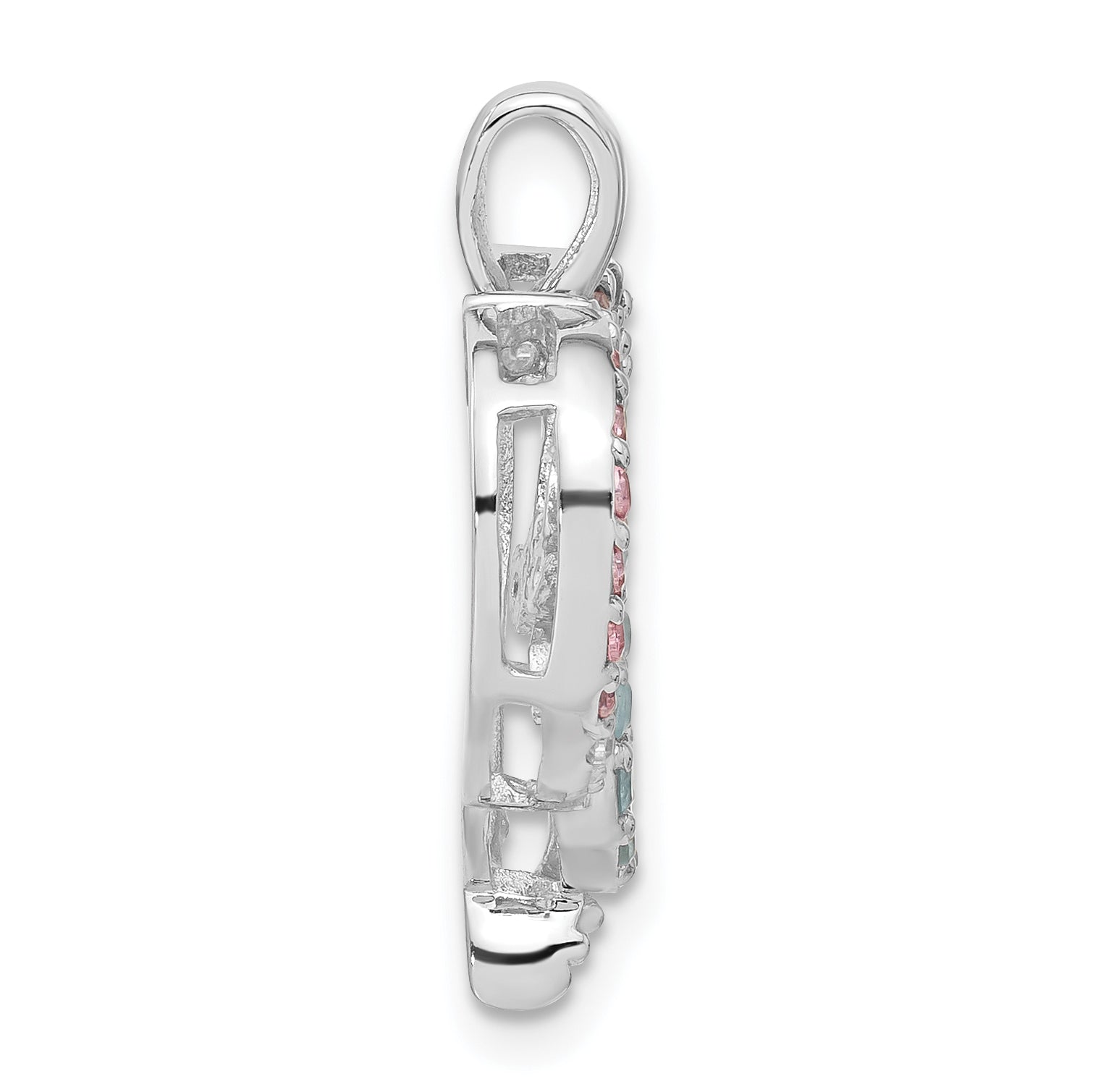 The Sterling Silver Multi Color CZ Heart Pendant brings a dash of elegance to any look. This pendant, crafted from polished sterling silver, gleams with vibrant hues of multi-colored cubic zirconia stones. At 23.75 mm in length and 20.3 mm in width, it carries a well-balanced charm perfect for women. The synthetic stones offer a durable yet stunning sparkle, making it ideal for both daily wear and special occasions. Elevate your jewelry collection with the Sterling Silver Multi Color CZ Heart Pendant and enjoy its timeless appeal.