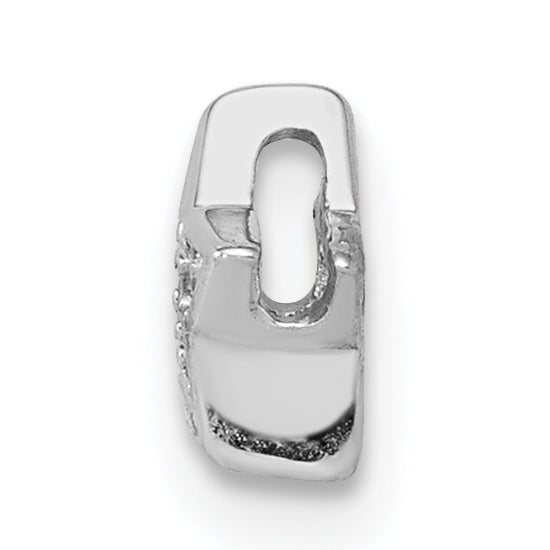 The Sterling Silver Notes Rhodium Plated CZ Star Slide Charm gleams with elegance and style, perfect for adding a touch of sparkle to any collection. Crafted from 925 sterling silver, this charm features a striking rhodium plating that enhances its silver tone while boosting durability. It hosts a clear, synthetic cubic zirconia star, adding a shimmering focal point that catches the eye. This charm, crafted through a precise casting method, serves as a solid piece for pendants and bracelets. Elevate your jewelry game with the Sterling Silver Notes Rhodium Plated CZ Star Slide Charm.