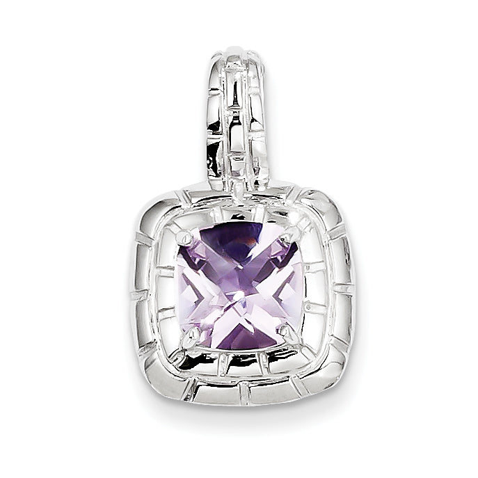 The Sterling Silver Pink Quartz Pendant captivates with its elegance and charm. Crafted from 925 sterling silver, this pendant showcases a dazzling Rose de France amethyst. Featuring a cushion-cut stone set in classic prong style, it radiates a gentle purple hue that's truly enchanting. Weighing in at just under 2 carats, the 8mm gemstone brings a subtle sparkle to your ensemble. At 23mm in length and 15mm in width, it adds a graceful touch to any neckline. Let the allure of the Sterling Silver Pink Quartz Pendant elevate your jewelry collection.