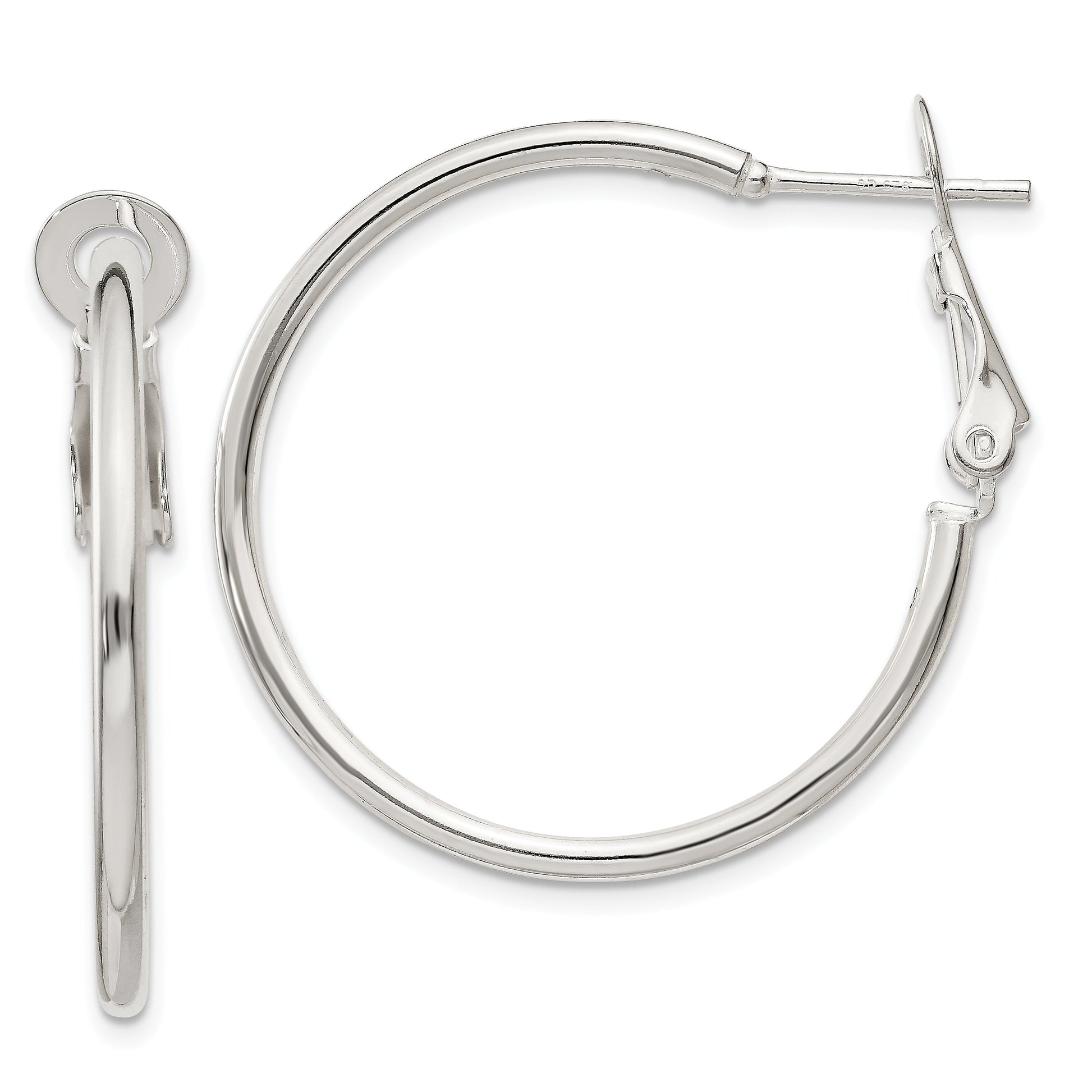 The Sterling Silver Polished 2X30mm Omega Back Round Hoop Earrings make a stylish statement. Crafted from high-quality 925 sterling silver, these earrings boast a polished finish that shines with elegance. The round hoops measure 30mm in width and are 2mm thick, presenting a bold look that exudes sophistication. Designed for ease and comfort, the omega back closure ensures a secure fit. These earrings also feature an anti-tarnish coating, keeping them beautiful for longer. Perfect for any occasion, the Sterling Silver Polished 2X30mm Omega Back Round Hoop Earrings add the right touch of glam to your style.