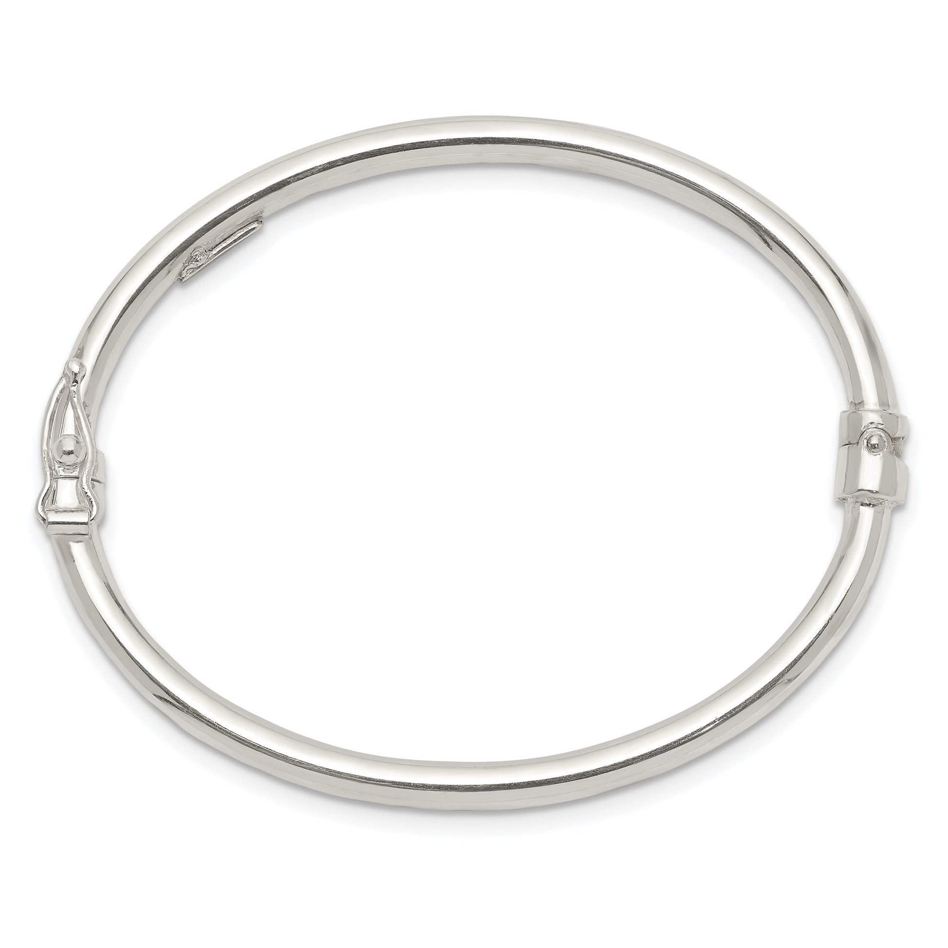 The Sterling Silver Polished 3mm Hinged Baby Bangle is a charming piece designed for little girls. Crafted from 925 sterling silver, this bangle exhibits a sleek polished finish that gleams beautifully. Its 3mm width makes it delicate, while the hinged clasp ensures it stays secure on tiny wrists. This bangle is more than just jewelry; it's a precious keepsake for small milestones. The gentle white color complements any outfit and makes it an ideal gift for special occasions. Treat your little one to this Sterling Silver Polished 3mm Hinged Baby Bangle and create cherished memories.