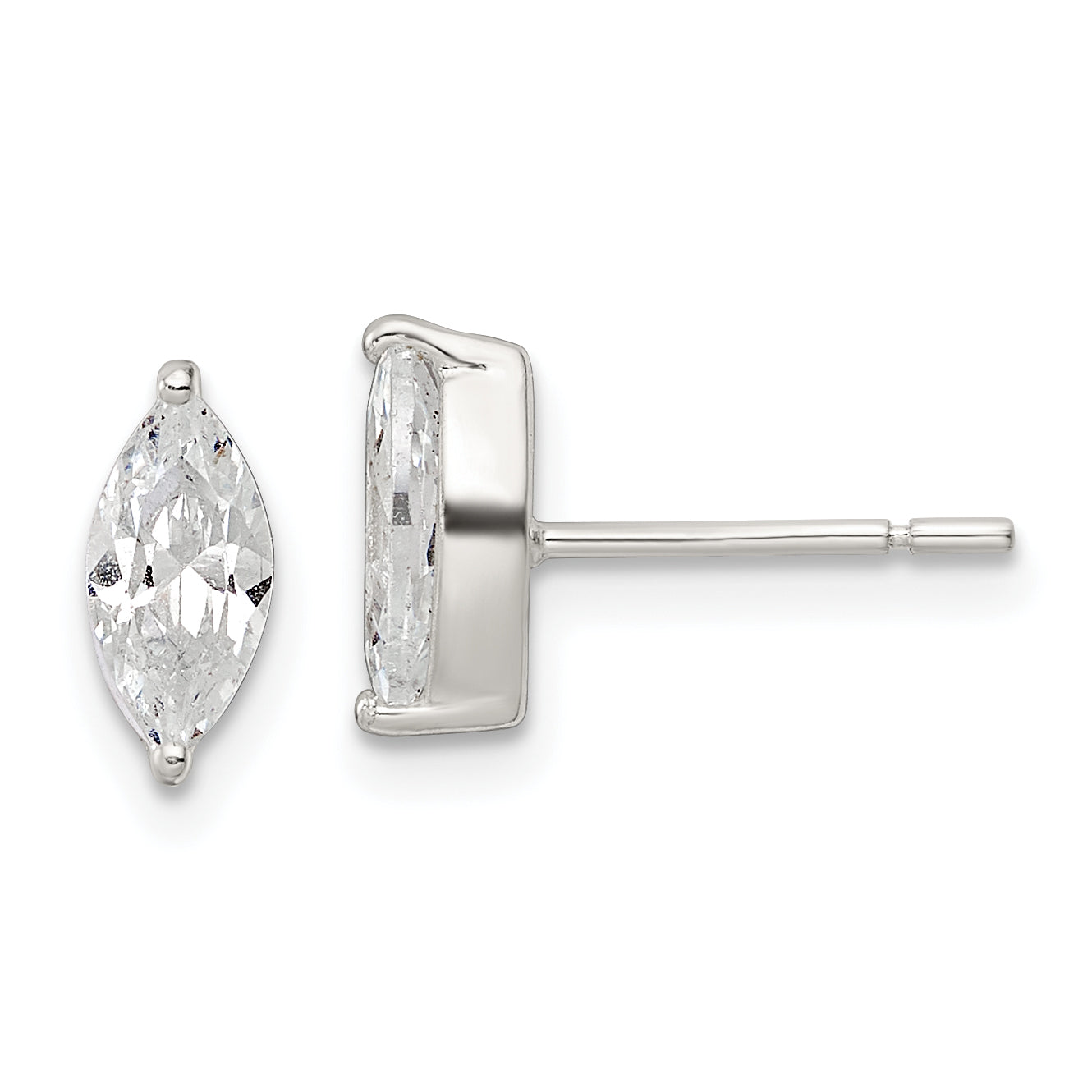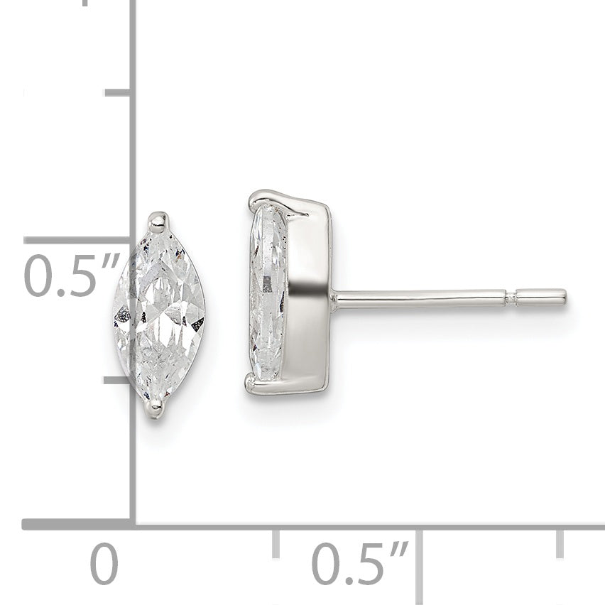 Dive into elegance with our Sterling Silver Polished Marquise CZ Stud Earrings. Crafted from high-quality 925 sterling silver, these earrings feature brilliant white marquise-shaped cubic zirconia stones, each measuring 9 x 4.5 mm. The polished finish and anti-tarnish coating ensure lasting shine and beauty. These earrings, designed specifically for women, offer a secure post and push back closure for comfort and ease of wear. Perfectly complete with two synthetic stones, experience the charm and luxury of these must-have jewelry pieces in dazzling style with our Sterling Silver Polished Marquise CZ Stud Earrings.