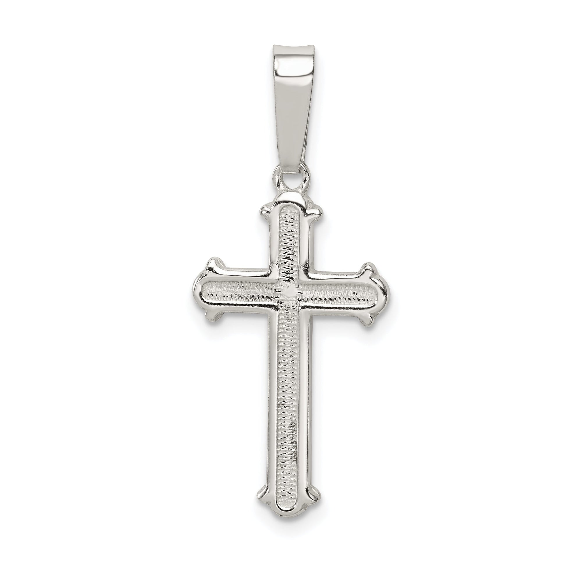 Unveil your faith with this stunning Sterling Silver Polished and Textured Center Finish Cross Pendant. Crafted from high-quality 925 sterling silver, this pendant showcases a polished finish with a unique textured center that beautifully catches the light. Measuring 23 mm in length and 13 mm in width, it offers a solid and substantial presence on any chain. An anti-tarnish coating ensures lasting shine, making it a timeless piece. Its flat back and themed design make it both comfortable and meaningful. Elevate your jewelry collection with this captivating Sterling Silver Polished and Textured Center Finish Cross Pendant.