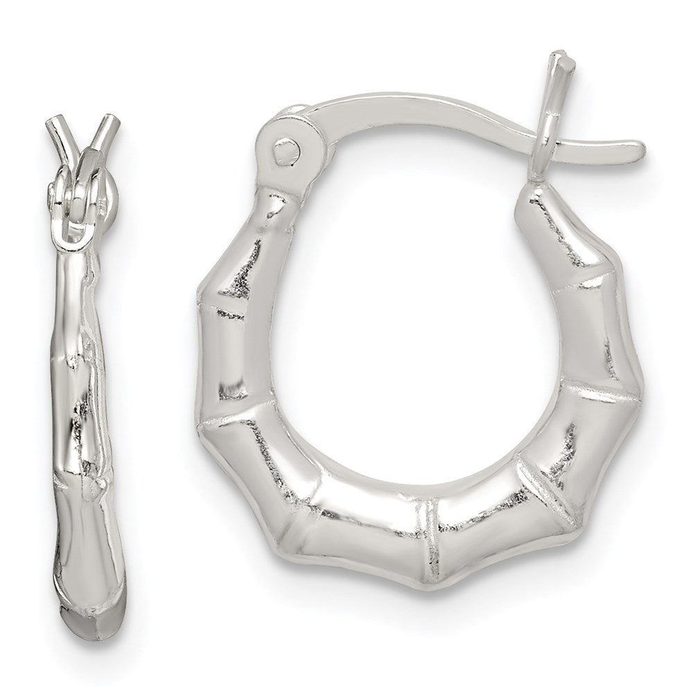 Step into elegance with our Sterling Silver Polished Bamboo Hoop Earrings. Crafted from 925 sterling silver, this pair radiates sophistication with a polished finish that gleams effortlessly. At 15mm in both length and width, these hoops feature a unique bamboo texture, adding a touch of nature-inspired style. Their anti-tarnish coating ensures longevity, making them a lasting addition to your jewelry collection. The hinged design offers easy wearing, while the wire and clutch closure secures them with ease. Embrace a timeless look with our Sterling Silver Polished Bamboo Hoop Earrings, perfect for any occasion.