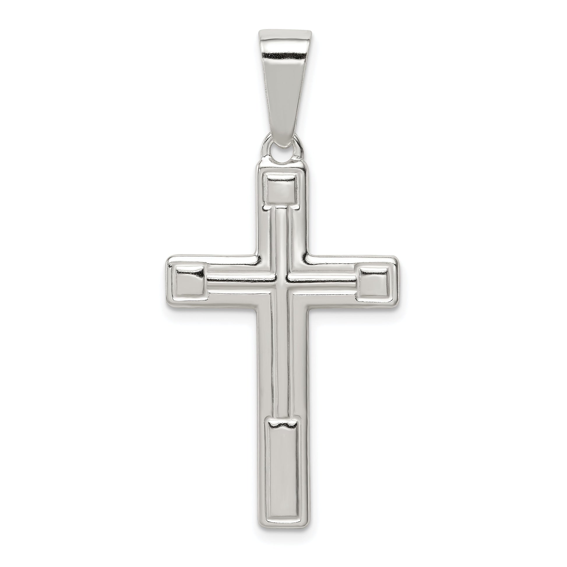 The Sterling Silver Polished Cross Pendant makes a grand statement of faith. Crafted from 925 sterling silver, its polished finish radiates elegance and sophistication. At 34 mm long and 20 mm wide, the pendant exudes a balanced charm that suits any outfit. With an anti-tarnish coating, this pendant maintains its brilliance over time. The solid build from skilled stamping ensures enduring quality. Its bail measures 5 mm in width and 10 mm in length, perfect for various chains. Experience timeless style with the Sterling Silver Polished Cross Pendant.