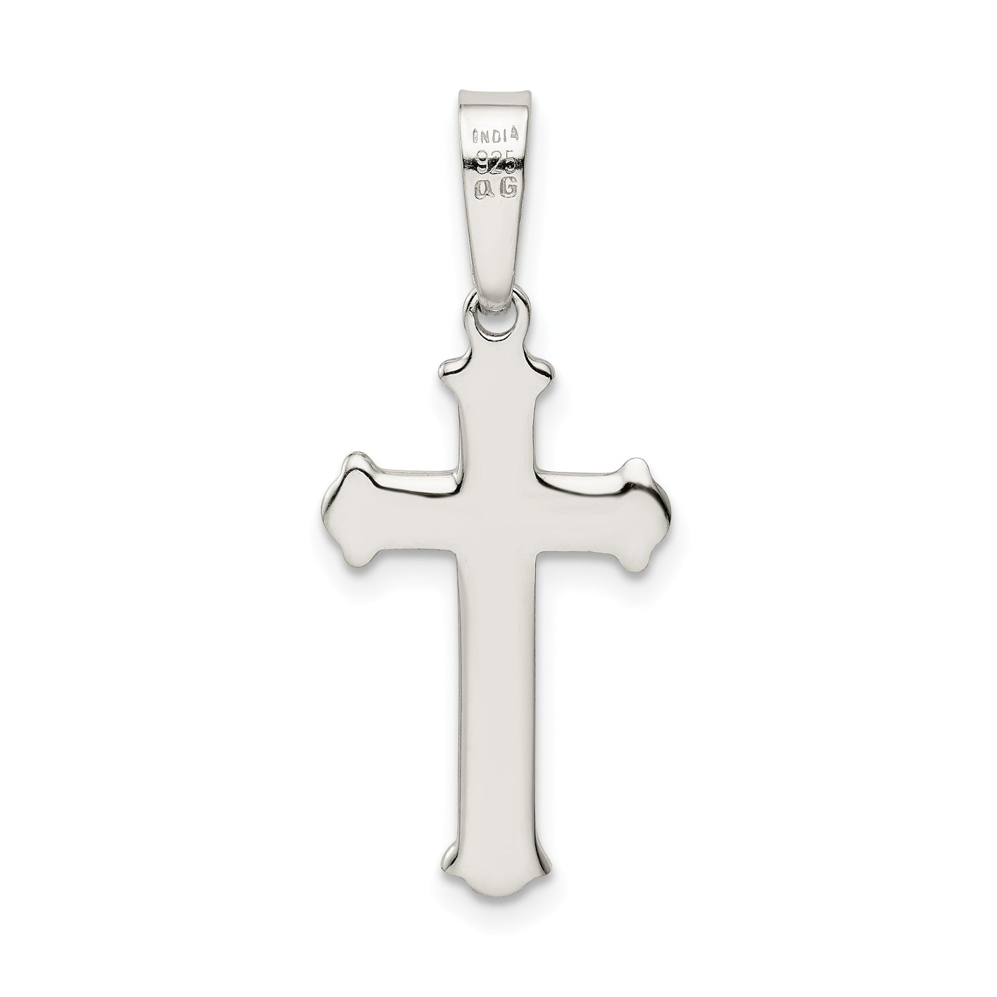 The Sterling Silver Polished Cross Pendant is a timeless piece of jewelry that complements any style. Crafted from 925 sterling silver, this pendant boasts a polished finish, ensuring a sleek and shiny look. With dimensions of 23 mm in length and 13 mm in width, it's the perfect size to wear daily. The anti-tarnish coating keeps it looking new, and its solid build, thanks to a meticulous stamping process, ensures durability. The flat back design adds comfort to its elegance. Adorned with a 4.8 mm bail, the Sterling Silver Polished Cross Pendant is ready to grace your collection with sophistication.