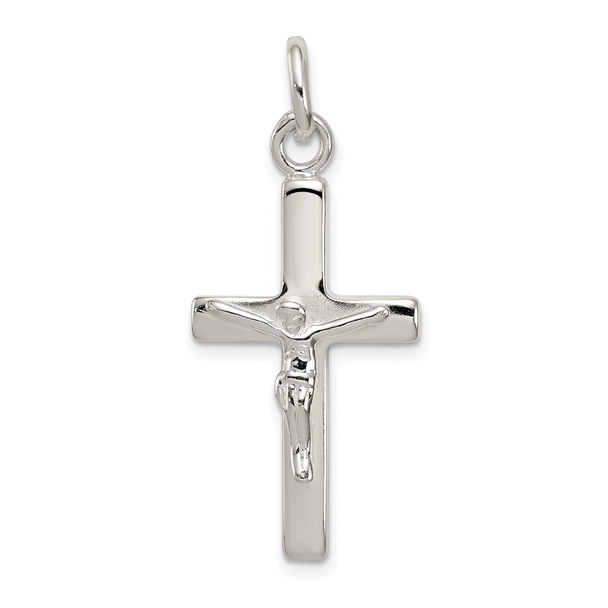 The Sterling Silver Polished Crucifix Cross Pendant is a timeless piece of fine jewelry, perfect for any occasion. Crafted from high-quality 925 sterling silver, this pendant offers a polished finish that catches the light beautifully. Measuring 27.26 mm in length and 15.4 mm in width, it provides a stunning focal point while remaining elegant and understated. Its anti-tarnish coating ensures lasting shine and durability, while the solid, casted design guarantees its resilience. This flat-back pendant exudes grace and simplicity, making the Sterling Silver Polished Crucifix Cross Pendant a treasured addition to any collection.