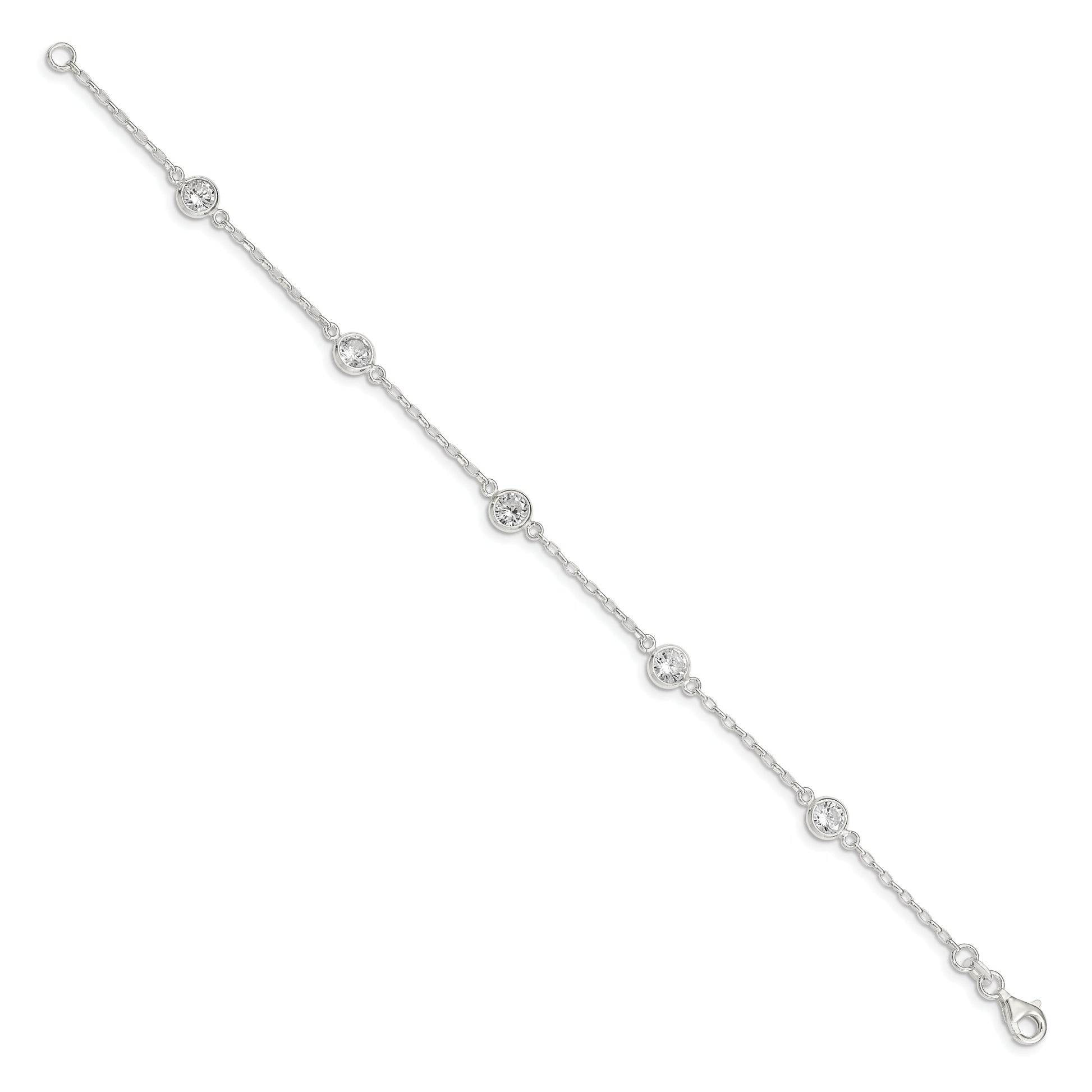 The Sterling Silver Polished CZ Bracelet is a stunning piece that elevates any outfit. Crafted from 925 sterling silver, this bracelet showcases dazzling white cubic zirconia stones that catch the light with every movement. The polished finish lends a sophisticated shine, perfect for both casual and formal occasions. Measuring 7.5 inches, it fits comfortably around the wrist, offering a charming touch with its 5.3 mm elements. The sturdy lobster clasp ensures it stays secure, making it a reliable choice for everyday wear. Delight in the beauty and elegance of the Sterling Silver Polished CZ Bracelet.